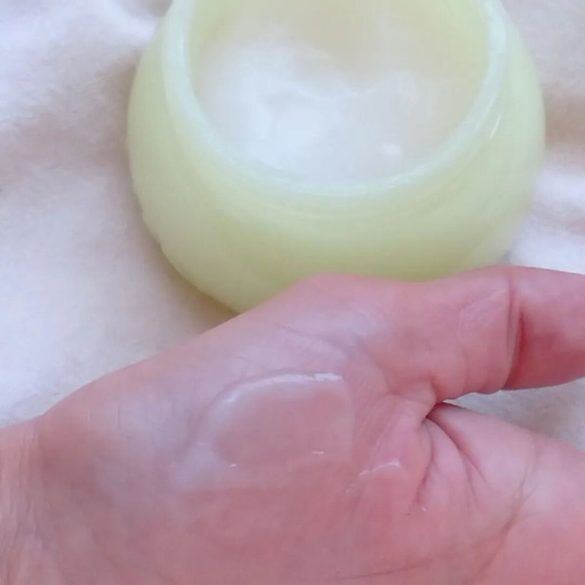かなりぷるんっとしたクリーム! めっちゃみずみずしい感じのテクスチャー ちょいもったりのジュレ感ある見た目!! 伸びてくれて、守ってくれる感があるね!! ぽわんぽわん!!クリームー!!感あるけど、 すくうと、思ったより軽め!! 私は年中乾燥肌で、季節の変わり目ゆらぎがち、、、肌のコンディションに合わせて使い分けられるのうれしい🙆✨️
