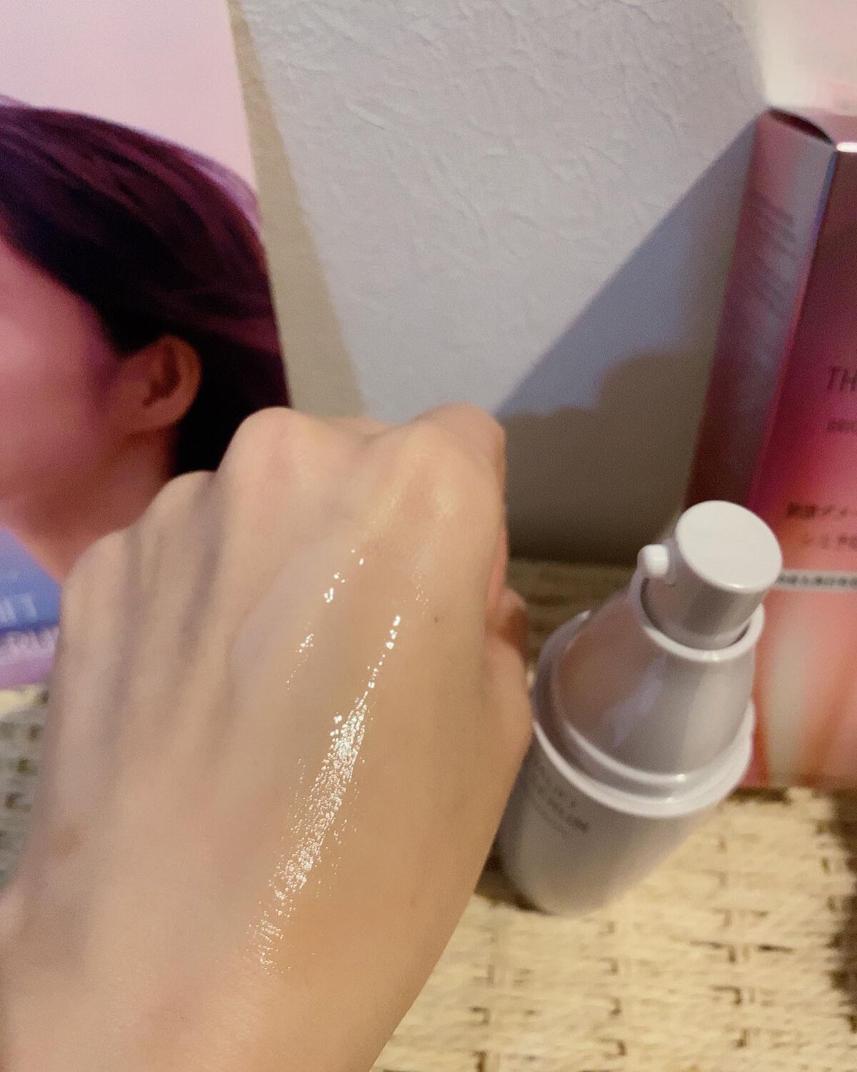 こちらはコテやヘアアイロンの熱ダメージから髪を守るヘアオイルになります。 うねりケア成分が、空洞化しクセがでやすい髪にタンパク質を補充することで、扱いやすいしなやかな髪へ導いてくれるのだとか。 ポンプ式の可愛いピンクのカラーのパケになっています。 テクスチャーはさらさらと水に近い感じですが、髪につけてみるとオイルのような仕上がりに。 香りはピュアリリーの女性らしい香りで使い心地よかったです。