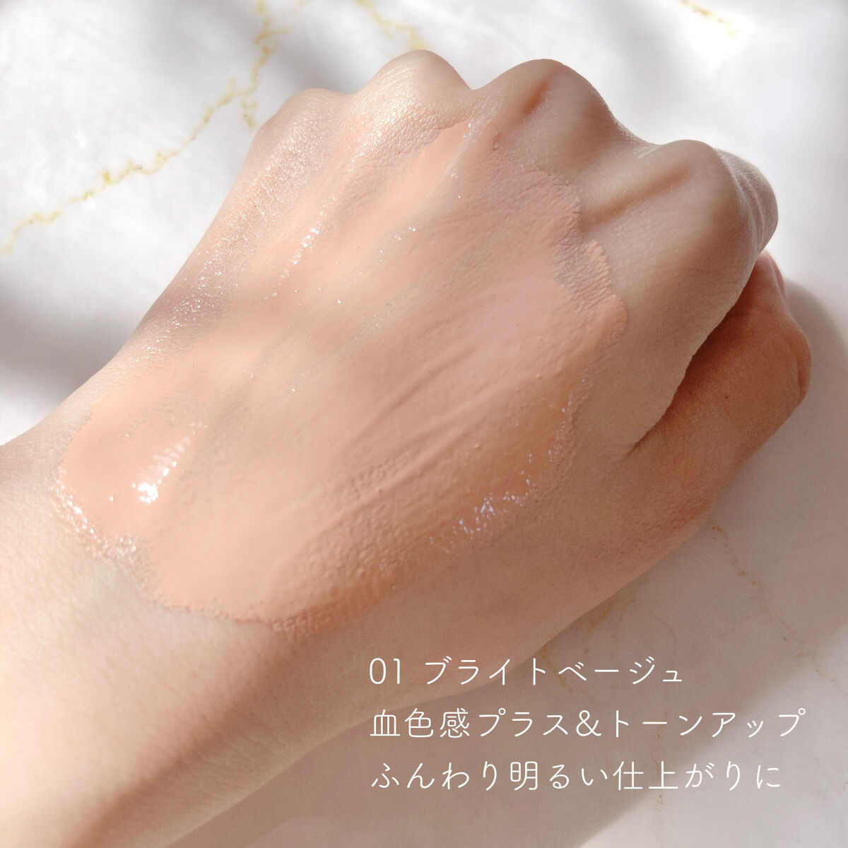 Wのほうが白っぽい黄色なのでトーンアップという点ではこっちの方が強い パールで艶っぽくみせてるのがW Wの方はマット目な感じで比較的サラサラとした肌表面の仕上がり Rはオイルっぽい感じがするので保湿を求めてるならこっちかも どちらも少量で伸びやすいです 特にRはバターが溶けるみたいな感じです