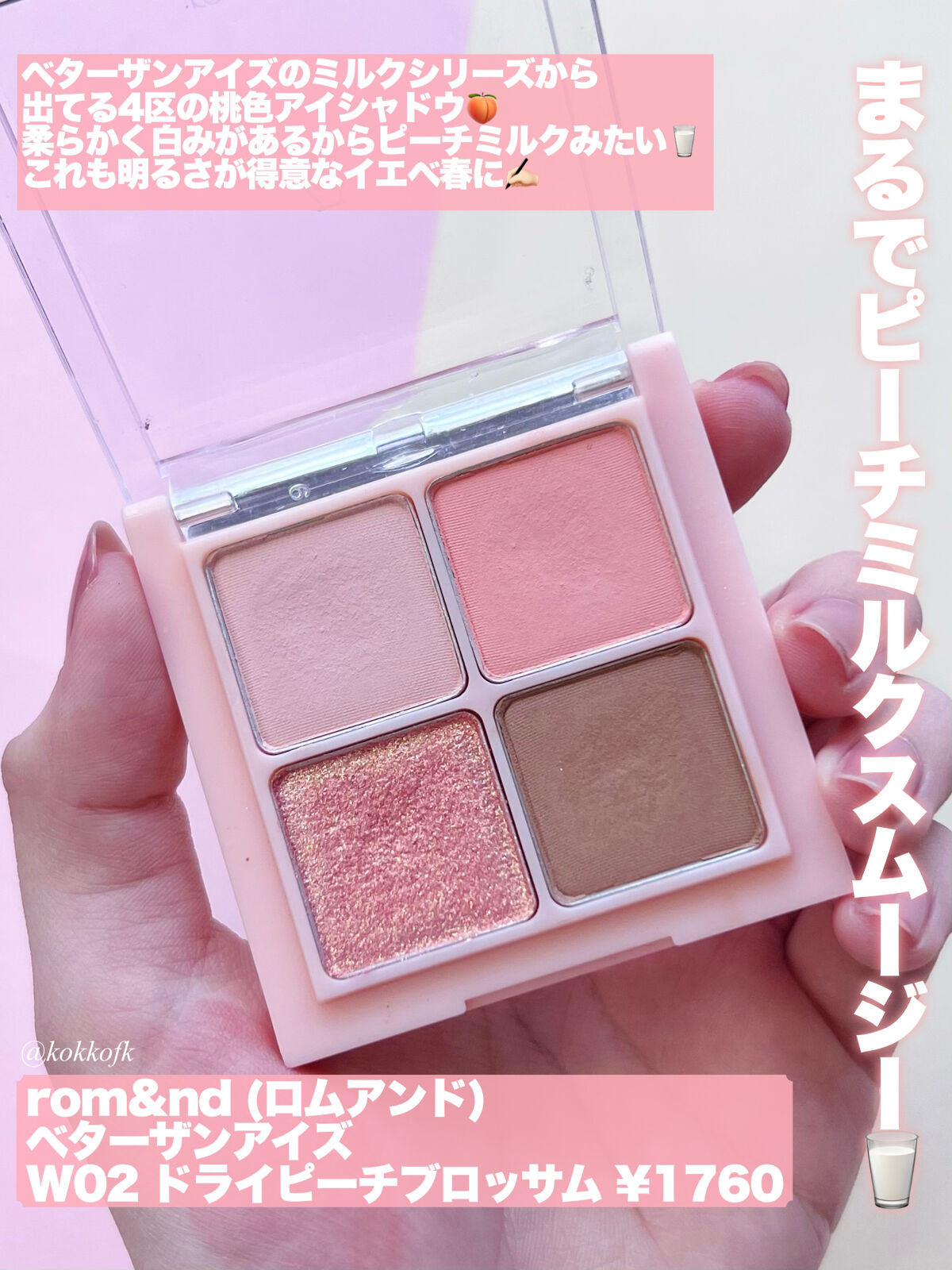 rom&nd────────────ベターザンパレット06 PEONY NUDE GARDEN (¥2900) rom&nd────────────ベターザンアイズ W03 Dry Strawberry (¥1569) HOLIKA HOLIKA────────────マイフェブムードアイパレットMOONY (¥2050) HOLIKA HOLIKA────────────マイフェブムードアイパレットPINK OLOGY (¥2050) CLIO────────────プロ アイ パレット13 PICNIC BY THE SUNSET (¥2390) PERIPERA────────────オール テイク ムード パレット04 MUTEFUL ROSE (¥1590) PERIPERA────────────オール テイク ムード パレット09 MOONLIKE LAVENDER PINK (¥1590) PERIPERA────────────インク ポケット シャドウ パレット05 TOUCHING TARO STARS (¥1190)