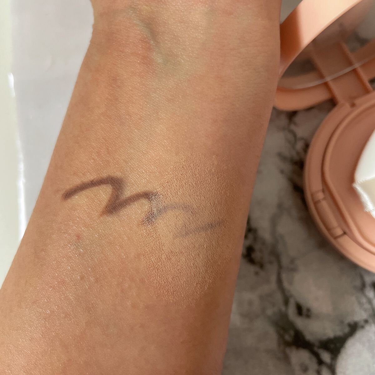 - 水,シクロペンタシロキサン,酸化チタン,メトキシケイヒ酸エチルヘキシル,フェニルトリメチコン,BG,PEG-10ジメチコン,パラメトキシケイヒ酸イソアミル,サリチル酸エチルヘキシル,グリセリン,トリメチルシロキシケイ酸,ナイアシンアミド,ジメチコン,ビスエチルヘキシルオキシフェノールメトキシフェニルトリアジン,ラウリルPEG-9ポリジメチルシロキシエチルジメチコン,塩化Na,酸化亜鉛,シリカ,ジステアルジモニウムヘクトライト,黄酸化鉄,(アクリレーツ/ジメチコン)コポリマー,シクロヘキサシロキサン,(ジメチコン/(PEG-10/15))クロスポリマー,ステアリン酸,水酸化Al,ミツロウ,赤酸化鉄,トリエトキシカプリリルシラン,香料,ケイ酸(Al/Mg),カプリリルグリコール,炭酸プロピレン,黒酸化鉄,カプリル酸グリセリル,エチルヘキシルグリセリン,1,2-ヘキサンジオール,アデノシン,α-イソメチルイオノン,EDTA-2Na,シトロネロール,クマリン,DPG,スベリヒユエキス,ツボクサエキス,ゲラニオール,リモネン,安息香酸ベンジル,ヒドロキシシトロネラール,クエン酸Na,ヘキシルシンナマル,リナロール,サリチル酸ベンジル,トコフェロール,プロパンジオール