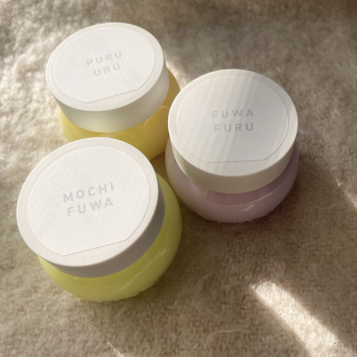 黄色はぷるぷるなテクスチャーでみずみずしくてトゥルトゥルした使い心地。 紫色はふわふわのホイップクリームでこっくりしたクリームでしっとりとした使用感。 緑色はフルーツジュレのようなテクスチャー。触り心地が楽しくて伸びがよくベタつかないです!