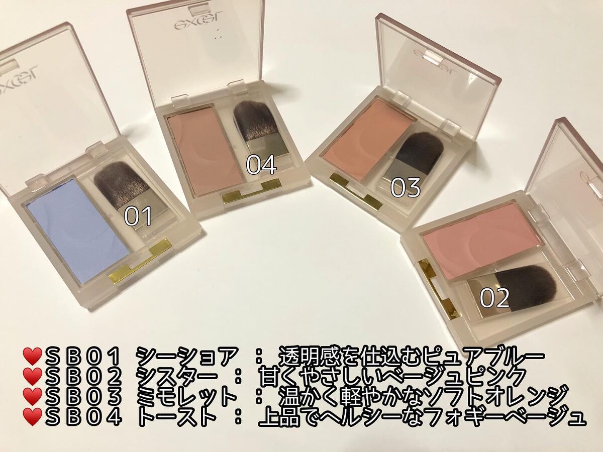 - <SB01 シーショア> タルク、トリエチルヘキサノイン、窒化ホウ素、ポリグリセリル-3ポリジメチルシロキシエチルジメチコン、ラウリン酸亜鉛、トリメチルシロキシケイ酸、メチルトリメチコン、ステアリン酸ソルビタン、セラミドNP、スクワラン、ホホバ種子油、オリーブ果実油、トコフェロール、メチルパラベン、(+/-)グンジョウ、マイカ、酸化チタン、酸化鉄、水酸化Al、赤202、赤226 <SB02 シスター> タルク、トリエチルヘキサノイン、窒化ホウ素、ポリグリセリル-3ポリジメチルシロキシエチルジメチコン、ラウリン酸亜鉛、トリメチルシロキシケイ酸、メチルトリメチコン、ステアリン酸ソルビタン、セラミドNP、スクワラン、ホホバ種子油、オリーブ果実油、トコフェロール、メチルパラベン、(+/-)グンジョウ、マイカ、酸化チタン、酸化鉄、水酸化Al、赤202、赤226 <SB03 ミモレット> タルク、トリエチルヘキサノイン、窒化ホウ素、ポリグリセリル-3ポリジメチルシロキシエチルジメチコン、ラウリン酸亜鉛、トリメチルシロキシケイ酸、メチルトリメチコン、ステアリン酸ソルビタン、セラミドNP、スクワラン、ホホバ種子油、オリーブ果実油、トコフェロール、メチルパラベン、(+/-)グンジョウ、マイカ、酸化チタン、酸化鉄、水酸化Al、赤202、赤226 <SB04 トースト> タルク、トリエチルヘキサノイン、窒化ホウ素、ポリグリセリル-3ポリジメチルシロキシエチルジメチコン、ラウリン酸亜鉛、トリメチルシロキシケイ酸、メチルトリメチコン、ステアリン酸ソルビタン、セラミドNP、スクワラン、ホホバ種子油、オリーブ果実油、トコフェロール、メチルパラベン、(+/-)グンジョウ、マイカ、酸化チタン、酸化鉄、水酸化Al、赤202、赤226 <SB05 ワルツ(限定)> タルク、トリエチルヘキサノイン、ステアリン酸ソルビタン、窒化ホウ素、ポリグリセリル-3ポリジメチルシロキシエチルジメチコン、ラウリン酸亜鉛、トリメチルシロキシケイ酸、メチルトリメチコン、セラミドNP、スクワラン、ホホバ種子油、オリーブ果実油、トコフェロール、メチルパラベン、(+/-)グンジョウ、ホウケイ酸(Ca/Al)、マイカ、金、酸化チタン、酸化鉄、水酸化Al、赤226 <SB06 オーケストラ(限定)> タルク、トリエチルヘキサノイン、ステアリン酸ソルビタン、窒化ホウ素、ポリグリセリル-3ポリジメチルシロキシエチルジメチコン、ラウリン酸亜鉛、トリメチルシロキシケイ酸、メチルトリメチコン、セラミドNP、スクワラン、ホホバ種子油、オリーブ果実油、トコフェロール、メチルパラベン、(+/-)グンジョウ、ホウケイ酸(Ca/Al)、マイカ、金、酸化チタン、酸化鉄、水酸化Al、赤226