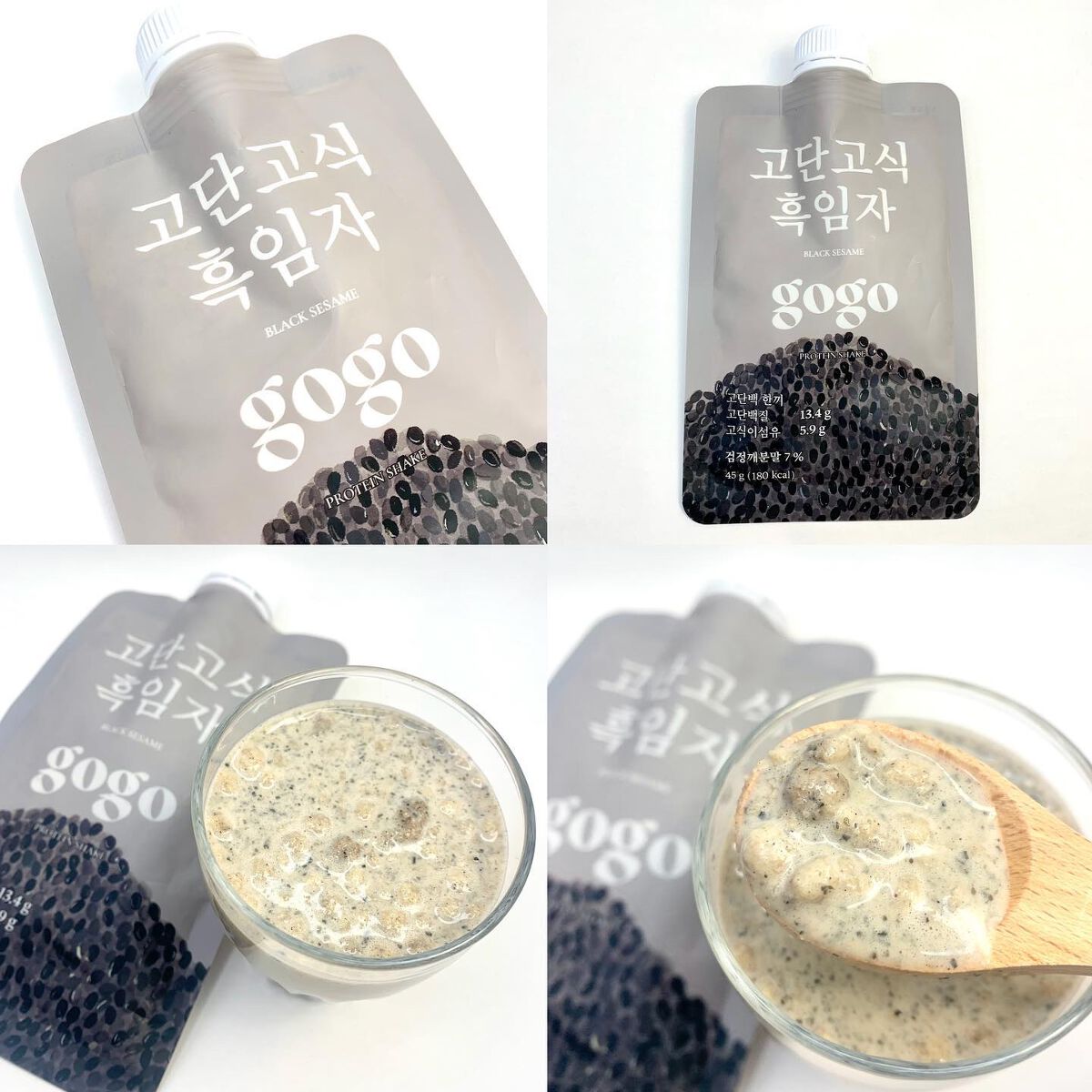 天然の食物繊維で1杯でしっかり満足感♩ 食事+タンパク質チャージまで可能 黒ごま味をお水で飲んでみたのですが、本当に黒ごまドリンクを飲んでいるような味でとても飲みやすくプロテインシェイクだと言われてもわからないほどでした! 専用の容器もわかりやすく分量も書かれていたのでプロテイン初心者の私でも、簡単に負担なく作って飲めました😌