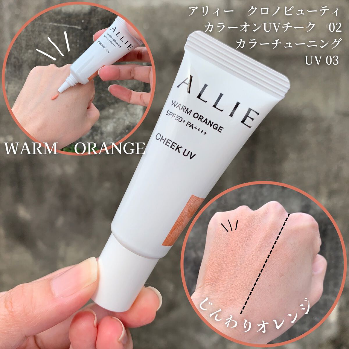 - ◆紫外線を浴びやすい、頬に使えるチークUV/鼻・頬に使える追いツヤUV ◆メイクの上から塗り直しとしても使える。 ◆汗・皮脂 マスクやタオルなどのこすれにも強く落ちにくい。 ◆「カラーUVヴェール技術」で、ベースメイクと混ざりにくく均一に密着。 SPF50+と感触の良さはそのままに素肌を活かした自然な色づきを両立! ◆8時間色持ち データ取得済み ※アリィー調べ。効果には個人差があります。 <基本情報> ・強力UV カット(SPF50+・PA++++) ・フリクションプルーフ:タオルやマスク等のこすれにも強く、落ちにくい ・スーパーウォータープルーフ:汗・水に抜群※²に強い機能 ※² アリィー商品内において LUCENT PINK(チーク 01) 自然に色づき血色感仕上がりの‟透け感ピンク” パッケージもピンクで、ポーチの中も華やぐメイクアイテムです WARM ORANGE(チーク 02) ヘルシーな血色感仕上げの‟じんわりオレンジ” じんわ~りと血色感を与えてくれるから、素肌を活かした自然な仕上がりに TRANSLUCENT(ラスター) ツヤ感を演出する‟シマーカラー” 鼻や頬にハイライトとして使うことで長時間ツヤが持続します