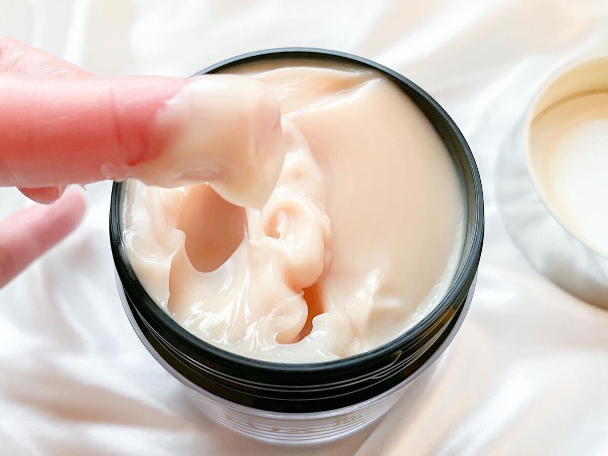 ヒト幹細胞エキスをリッチに配合し、最新の知見に基づき選りすぐりの成分を凝縮した贅沢処方のオールインワンアイテム。 吸水スフィアという、塗るとに水分を吸い込み、膨潤して年齢サインをふっくらピンッとさせる成分を配合。 砂漠地帯で“復活の木”と呼ばれる植物に存在する復活モイスチャー成分のグリセリルグルコシドも配合しています。 滑らかなクリーム。伸びがよく、馴染むととてもしっとり柔らかな感触に。ベタつきはありません。ツヤ感もアップするような使い心地でとても良かったです。