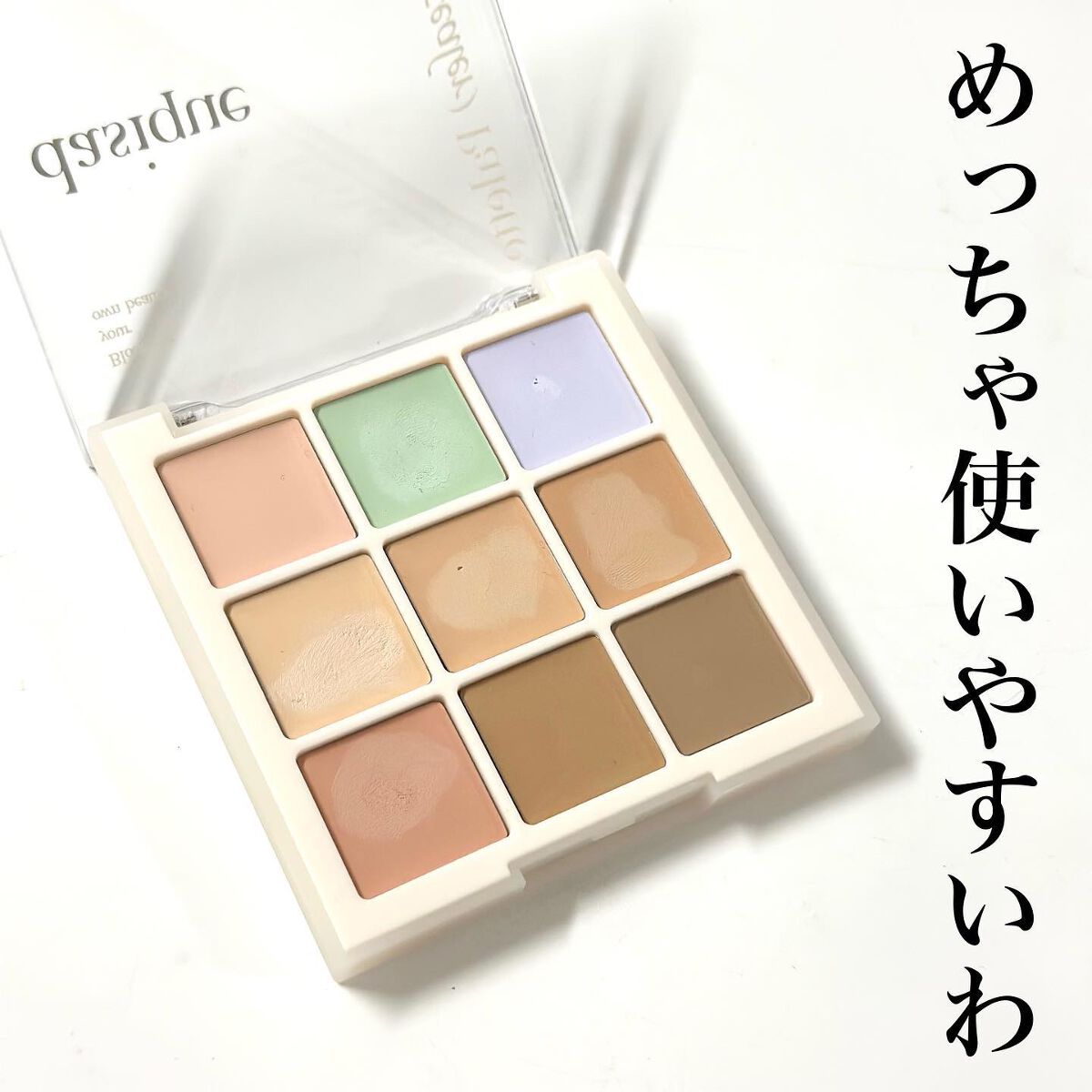 デイジークのプロコンシーラーパレットこれアイシャドウに見えるけどコンシーラークリーミーなテクスチャでお肌にピタッとフィットなにより9色全てが肌悩みに合わせて使えるカラー!! 9色もいるか?と思ったけど捨て色ないんよな 指でもブラシでも馴染みやすくてなんならパウダーとかした後にもうちょっとカバーしたいなって時にも使える