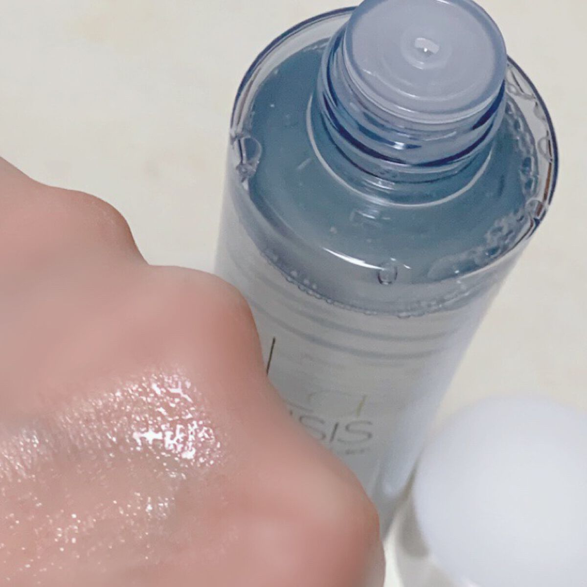 ややとろみのあるテクスチャでつけた瞬間 すぐにしっとり保湿されたお肌になれます☺︎ 自分の指で触ってみても肌がしっとりツルツルしていて、次の日の朝もしっかり持続していました♡