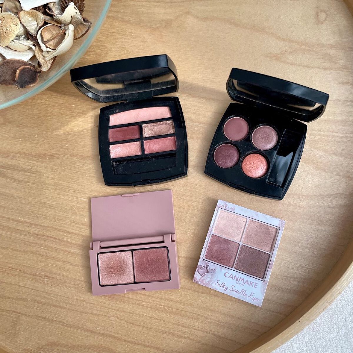 リニューアルされたキャンメイクのパウダーチークス♡ 04番クレバーベージュの「クレバー」は、日本語で「賢い、利口な」という意味があるそうで、単品使いとしてだけでなく、ハイライトやニュアンスチェンジとしても使えるという万能さを商品名に込めているみたい✨ 発色は柔らかいのに塗ると余白が埋まる感じがする!とすごく喜んでいただけました! 淡いピンクベージュにブルーパールって、プチプラアイテムにはなかなか珍しいんじゃないかな?✨