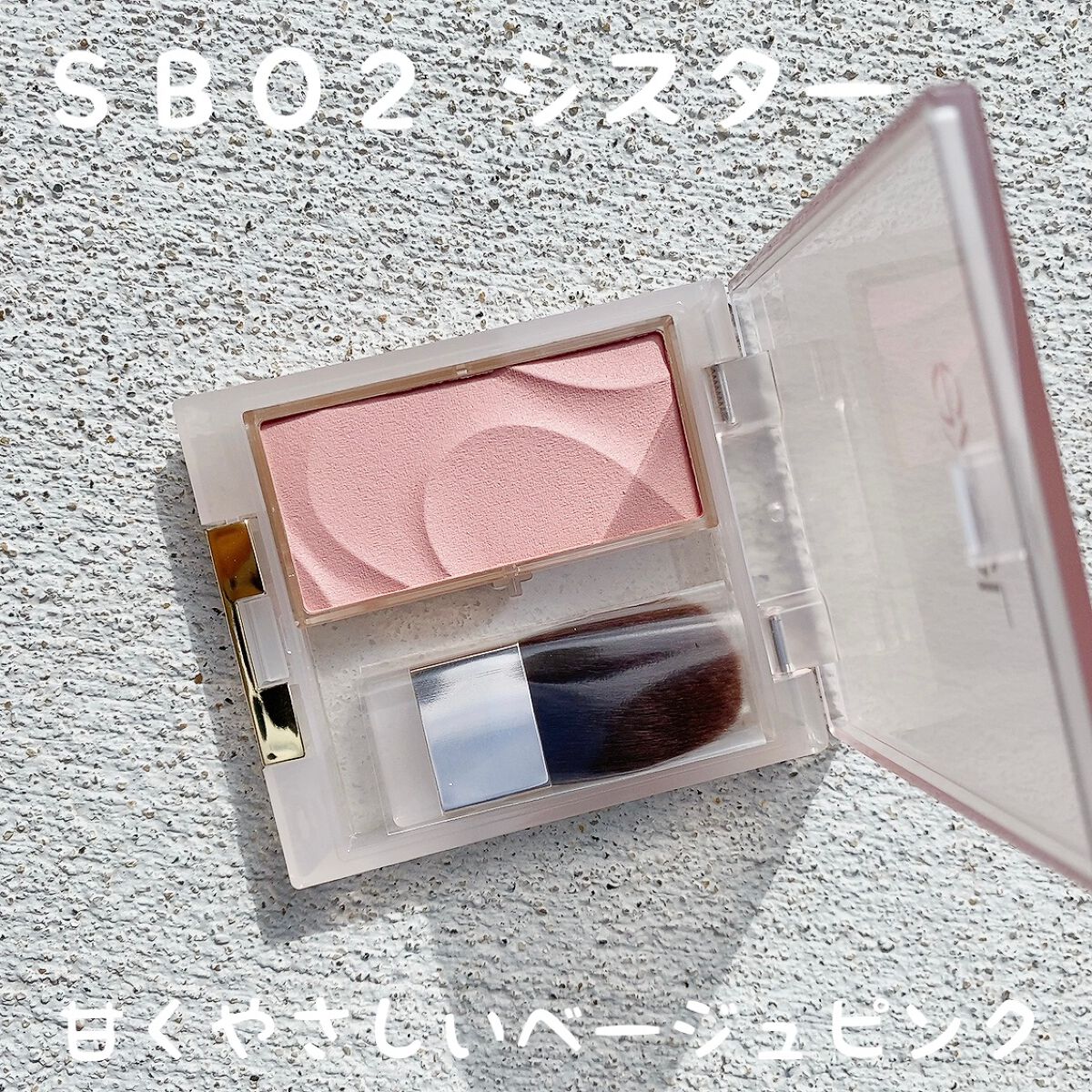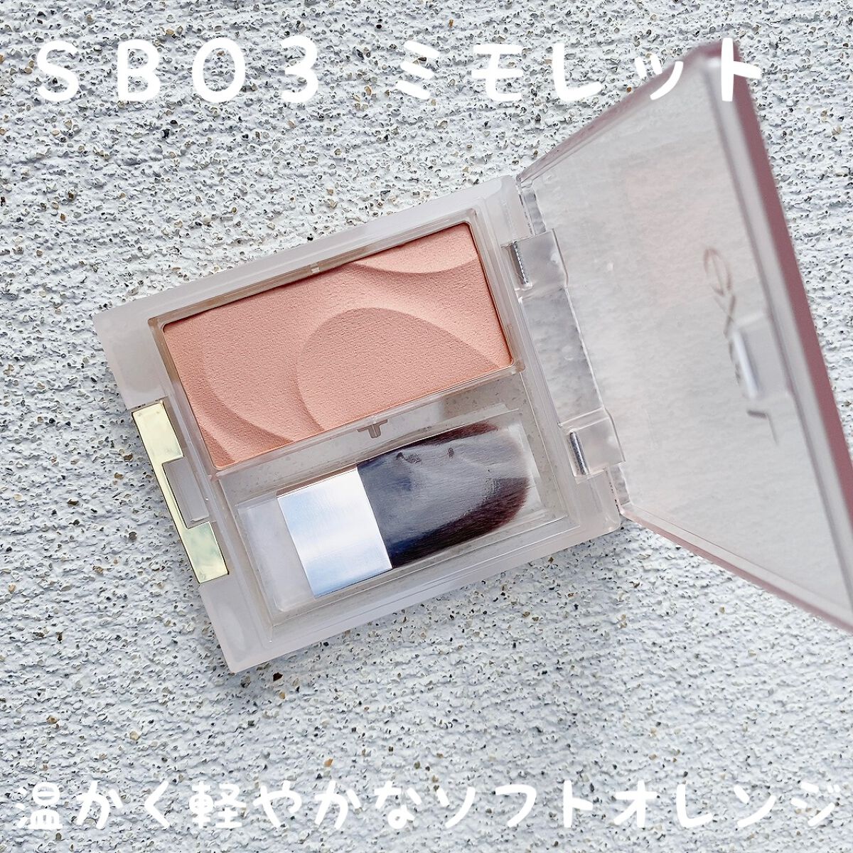 - <SB01 シーショア> タルク、トリエチルヘキサノイン、窒化ホウ素、ポリグリセリル-3ポリジメチルシロキシエチルジメチコン、ラウリン酸亜鉛、トリメチルシロキシケイ酸、メチルトリメチコン、ステアリン酸ソルビタン、セラミドNP、スクワラン、ホホバ種子油、オリーブ果実油、トコフェロール、メチルパラベン、(+/-)グンジョウ、マイカ、酸化チタン、酸化鉄、水酸化Al、赤202、赤226 <SB02 シスター> タルク、トリエチルヘキサノイン、窒化ホウ素、ポリグリセリル-3ポリジメチルシロキシエチルジメチコン、ラウリン酸亜鉛、トリメチルシロキシケイ酸、メチルトリメチコン、ステアリン酸ソルビタン、セラミドNP、スクワラン、ホホバ種子油、オリーブ果実油、トコフェロール、メチルパラベン、(+/-)グンジョウ、マイカ、酸化チタン、酸化鉄、水酸化Al、赤202、赤226 <SB03 ミモレット> タルク、トリエチルヘキサノイン、窒化ホウ素、ポリグリセリル-3ポリジメチルシロキシエチルジメチコン、ラウリン酸亜鉛、トリメチルシロキシケイ酸、メチルトリメチコン、ステアリン酸ソルビタン、セラミドNP、スクワラン、ホホバ種子油、オリーブ果実油、トコフェロール、メチルパラベン、(+/-)グンジョウ、マイカ、酸化チタン、酸化鉄、水酸化Al、赤202、赤226 <SB04 トースト> タルク、トリエチルヘキサノイン、窒化ホウ素、ポリグリセリル-3ポリジメチルシロキシエチルジメチコン、ラウリン酸亜鉛、トリメチルシロキシケイ酸、メチルトリメチコン、ステアリン酸ソルビタン、セラミドNP、スクワラン、ホホバ種子油、オリーブ果実油、トコフェロール、メチルパラベン、(+/-)グンジョウ、マイカ、酸化チタン、酸化鉄、水酸化Al、赤202、赤226 <SB05 ワルツ(限定)> タルク、トリエチルヘキサノイン、ステアリン酸ソルビタン、窒化ホウ素、ポリグリセリル-3ポリジメチルシロキシエチルジメチコン、ラウリン酸亜鉛、トリメチルシロキシケイ酸、メチルトリメチコン、セラミドNP、スクワラン、ホホバ種子油、オリーブ果実油、トコフェロール、メチルパラベン、(+/-)グンジョウ、ホウケイ酸(Ca/Al)、マイカ、金、酸化チタン、酸化鉄、水酸化Al、赤226 <SB06 オーケストラ(限定)> タルク、トリエチルヘキサノイン、ステアリン酸ソルビタン、窒化ホウ素、ポリグリセリル-3ポリジメチルシロキシエチルジメチコン、ラウリン酸亜鉛、トリメチルシロキシケイ酸、メチルトリメチコン、セラミドNP、スクワラン、ホホバ種子油、オリーブ果実油、トコフェロール、メチルパラベン、(+/-)グンジョウ、ホウケイ酸(Ca/Al)、マイカ、金、酸化チタン、酸化鉄、水酸化Al、赤226