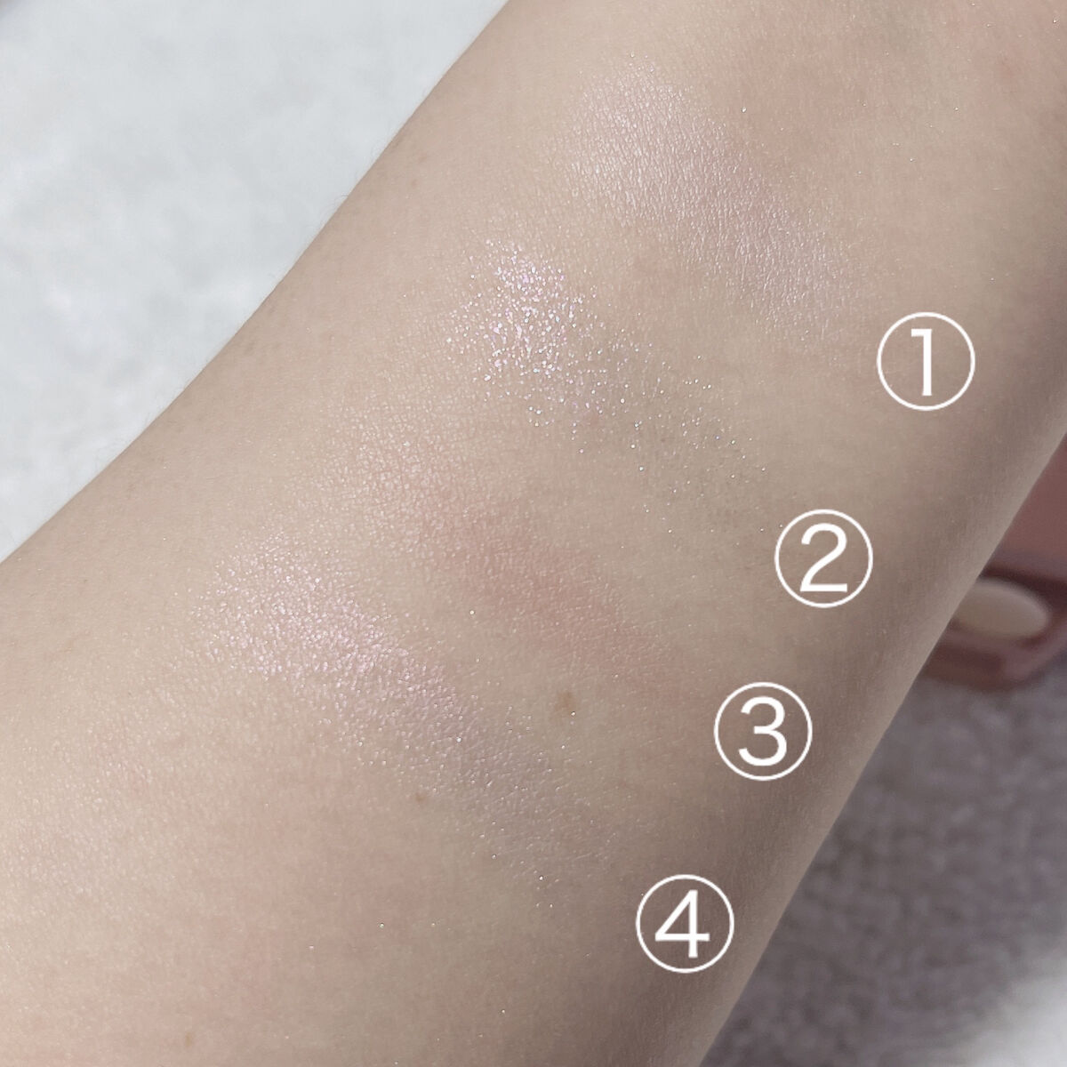 塗布した感じだと、パレットで見るよりかは発色は控えめなので肌馴染みがよくラメが細かくツヤ感も出してくれます︎👍🏻 ̖́- 凛とした雰囲気だけど何処かエレガンスな雰囲気もある仕上がりになる印象です。 グリーンとブラウンの組み合わせって思ってたけど、今までと違う雰囲気の目元になるので買って正解でした👏🏻 ̖́- ピンクに発色するというよりかは、光り輝く透明感やツヤ感を演出してくれます👍🏻 ̖́- クリーム系だからベタつきやヨレたり気になるところでしたが、実際に塗布してみると伸びもよくサラッとしていてベタつきもきになりませんでした。 ギラギラせず馴染んでくれて、綺麗な透明感とツヤ感が最高に好みでした✨ それに資生堂のメデューサピンクに似てる気はするけど、使用感とか比べてもメデューサよりコッチがの好みかもしれな🫰🏻 このナチュラルなツヤ感たまりません🫶🏻🤍 ̖́-