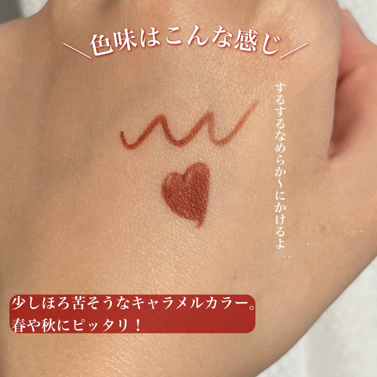 CEZANNEのうるぷる唇になれるリップです! 保湿力が高く、乾燥したリップクリームも何も塗ってない唇に直接塗っても綺麗に仕上がります✨ 色味は深めの赤色なのですが、仕上がりが少しシアーな発色です! 塗って→ティッシュオフを2回繰り返すと色味が定着し、マスクに付きにくくなります! 何度も使いたくなるほど仕上がり・使い心地が良い! 528円で買えるのが凄く嬉しい!