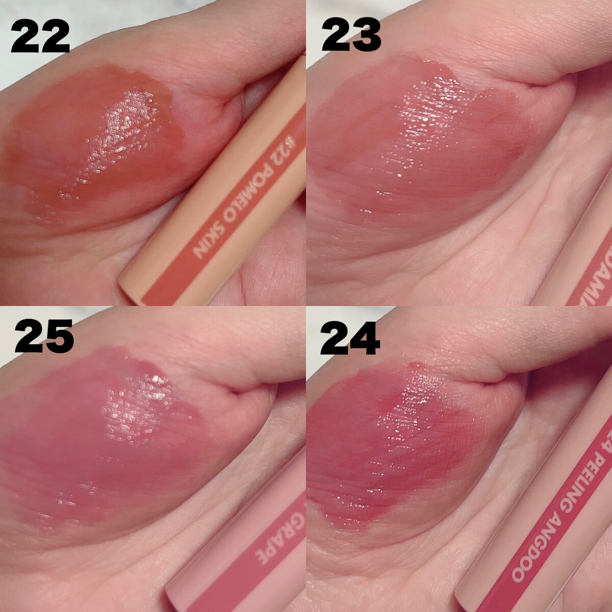 🍎〖rom&nd〗新色レビュー!!可愛い組み合わせも見つけたよ🍎⟡.·⟡.·✓rom&ndザジューシーラスティングティント22ドトリボムパケリニューアル後に追加された新色想像よりも鮮明な色味でちょっぴり青み強めイエべ秋よりはブルベ冬よりのカラ...