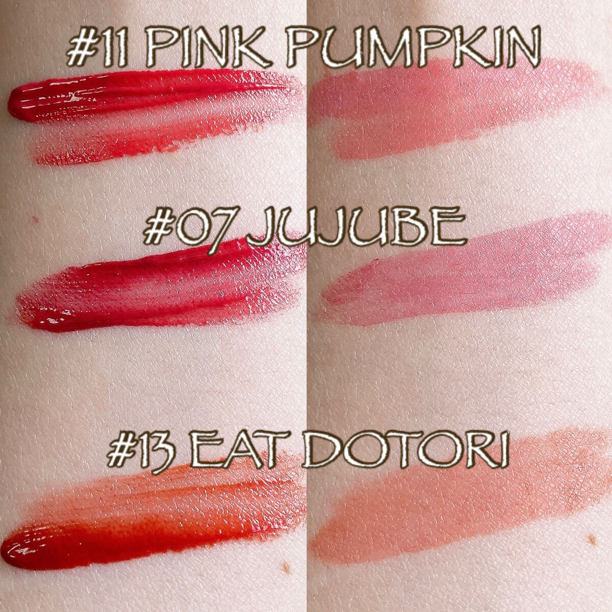 - <06 フィグフィグ(FIGFIG)> 水、オクチルドデカノール、ジメチコン、変性アルコール、アクリレーツコポリマー、ステアリン酸ソルビタン、エチルセルロース、ベヘニルアルコール、ペンチレングリコール、キウイエキス、パパイア果実エキス、グレープフルーツ果実エキス、ココヤシ果実エキス、マンゴー果実エキス、グアバ果実エキス、ポリソルベート60、シリカ、(アクリル酸Na/アクリロイルジメチルタウリンNa)コポリマー、リンゴ酸ジイソステアリル、トリイソステアリン酸ポリグリセリル-2、イソヘキサデカン、ポリソルベート80、ジイソステアリン酸ポリグリセリル-2、オレイン酸ソルビタン、エチルヘキシルグリセリン、BG、EDTA-2Na、フェノキシエタノール、香料、酸化チタン、酸化鉄、赤202、赤227、黄5、赤102、青1 <07 ジュジュブ(JUJUBE)> 水、オクチルドデカノール、ジメチコン、変性アルコール、アクリレーツコポリマー、ステアリン酸ソルビタン、エチルセルロース、ベヘニルアルコール、ペンチレングリコール、キウイエキス、パパイア果実エキス、グレープフルーツ果実エキス、ココヤシ果実エキス、マンゴー果実エキス、グアバ果実エキス、ポリソルベート60、シリカ、(アクリル酸Na/アクリロイルジメチルタウリンNa)コポリマー、トリイソステアリン酸ポリグリセリル-2、リンゴ酸ジイソステアリル、イソヘキサデカン、ポリソルベート80、ジイソステアリン酸ポリグリセリル-2、オレイン酸ソルビタン、エチルヘキシルグリセリン、BG、EDTA-2Na、フェノキシエタノール、香料、酸化チタン、酸化鉄、赤202、赤227、黄5、黄4、青1 <08 アップルブラウン(APPLE BROWN)> 水、オクチルドデカノール、ジメチコン、変性アルコール、アクリレーツコポリマー、ステアリン酸ソルビタン、エチルセルロース、ベヘニルアルコール、ペンチレングリコール、キウイエキス、パパイア果実エキス、グレープフルーツ果実エキス、ココヤシ果実エキス、マンゴー果実エキス、グアバ果実エキス、ポリソルベート60、シリカ、(アクリル酸Na/アクリロイルジメチルタウリンNa)コポリマー、トリイソステアリン酸ポリグリセリル-2、イソヘキサデカン、リンゴ酸ジイソステアリル、ポリソルベート80、ジイソステアリン酸ポリグリセリル-2、オレイン酸ソルビタン、エチルヘキシルグリセリン、BG、EDTA-2Na、フェノキシエタノール、香料、酸化鉄、黄5、赤202、酸化チタン、赤227、青1 <11 ピンクパンプキン(PINK PUMPKIN)> 水、オクチルドデカノール、ジメチコン、変性アルコール、アクリレーツコポリマー、ステアリン酸ソルビタン、エチルセルロース、ベヘニルアルコール、ペンチレングリコール、キウイエキス、パパイア果実エキス、グレープフルーツ果実エキス、ココヤシ果実エキス、マンゴー果実エキス、グアバ果実エキス、ポリソルベート60、シリカ、(アクリル酸Na/アクリロイルジメチルタウリンNa)コポリマー、リンゴ酸ジイソステアリル、イソヘキサデカン、トリイソステアリン酸ポリグリセリル-2、ポリソルベート80、ジイソステアリン酸ポリグリセリル-2、オレイン酸ソルビタン、エチルヘキシルグリセリン、BG、EDTA-2Na、フェノキシエタノール、香料、酸化チタン、酸化鉄、赤202、黄4、赤227、黄5、赤104(1) <22 ポメロスキン(POMELO SKIN)> 水、オクチルドデカノール、ジメチコン、変性アルコール、アクリレーツコポリマー、ポリソルベート60、エチルセルロース、ベヘニルアルコール、ペンチレングリコール、(アクリル酸Na/アクリロイルジメチルタウリンNa)コポリマー、シリカ、ステアリン酸ソルビタン、イソヘキサデカン、リンゴ酸ジイソステアリル、フェノキシエタノール、酸化チタン、トリイソステアリン酸ポリグリセリル-2、ポリソルベート80、酸化鉄、香料、オレイン酸ソルビタン、エチレンジアミンジコハク酸3Na、エチルヘキシルグリセリン、赤202、ジイソステアリン酸ポリグリセリル-2、赤227、黄5、青1、BG、キウイエキス、パパイア果実エキス、グレープフルーツ果実エキス、ココヤシ果実、マンゴー果実エキス、グアバ果実エキス <23 ヌカダミア(NUCADAMIA)> 水、オクチルドデカノール、ジメチコン、変性アルコール、アクリレーツコポリマー、ポリソルベート60、エチルセルロース、ベヘニルアルコール、ペンチレングリコール、(アクリル酸Na/アクリロイルジメチルタウリンNa)コポリマー、シリカ、ステアリン酸ソルビタン、イソヘキサデカン、フェノキシエタノール、リンゴ酸ジイソステアリル、酸化チタン、ポリソルベート80、トリイソステアリン酸ポリグリセリル-2、酸化鉄、香料、オレイン酸ソルビタン、エチレンジアミンジコハク酸3Na、赤202、赤227、黄5、ジイソステアリン酸ポリグリセリル-2、エチルヘキシルグリセリン、黄4、青1、BG、キウイエキス、パパイア果実エキス、グレープフルーツ果実エキス、ココヤシ果実、マンゴー果実エキス <24 ピーリングエンドゥ(PEELING ANGDOO)> 水、オクチルドデカノール、ジメチコン、変性アル