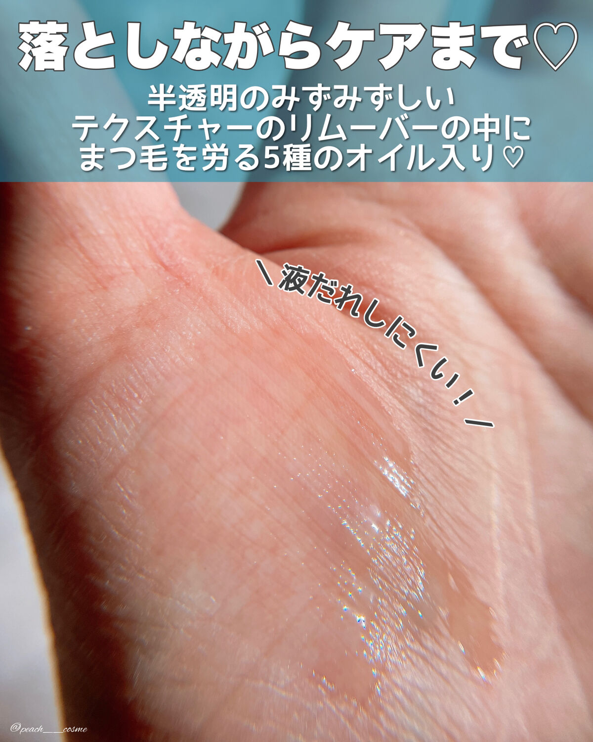 - スーパープルーフマスカラもスルッと落とすメルティングリムーバー。 無香料&無着色処方、5つのまつ毛ケア成分(保湿)配合でまつ毛をケアしながらしっかりオフできるマスカラリムーバーです。 <Point1>スッととかして1度でOFF!簡単クレンジング <Point2>スーパープルーフマスカラもOK!メルティングオイルで素早くクレンジング <Point3>眼刺激&低刺激テスト臨床済*、こだわり成分でマイルドクレンジング *全ての方に刺激が発生しないということではありません