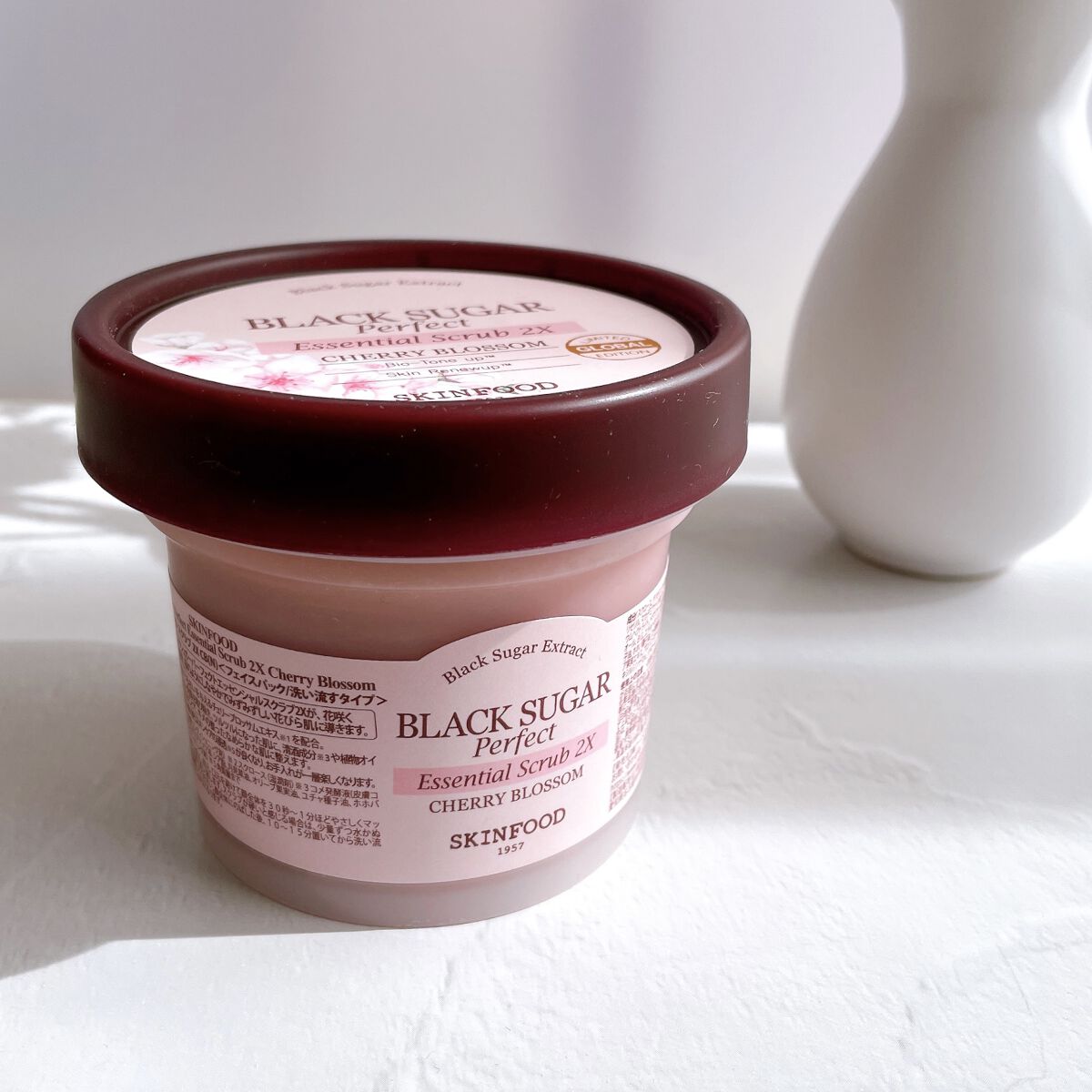 スキンフードのベストセラー 私が初めて購入品した ブラックシュガースクラブ🤎 古い角質と皮脂ケア ✰2種類あるブラックシュガースクラブのうち、エッセンシャルオイル※配合&スクラブが細かくなり、比較的マイルドなテクスチャー 顔だけでなくボディにも使えるマルチスクラブ 10分ほど顔にのせた後、やさしく洗い流すと、なめらかな感触&しっとり仕上げ