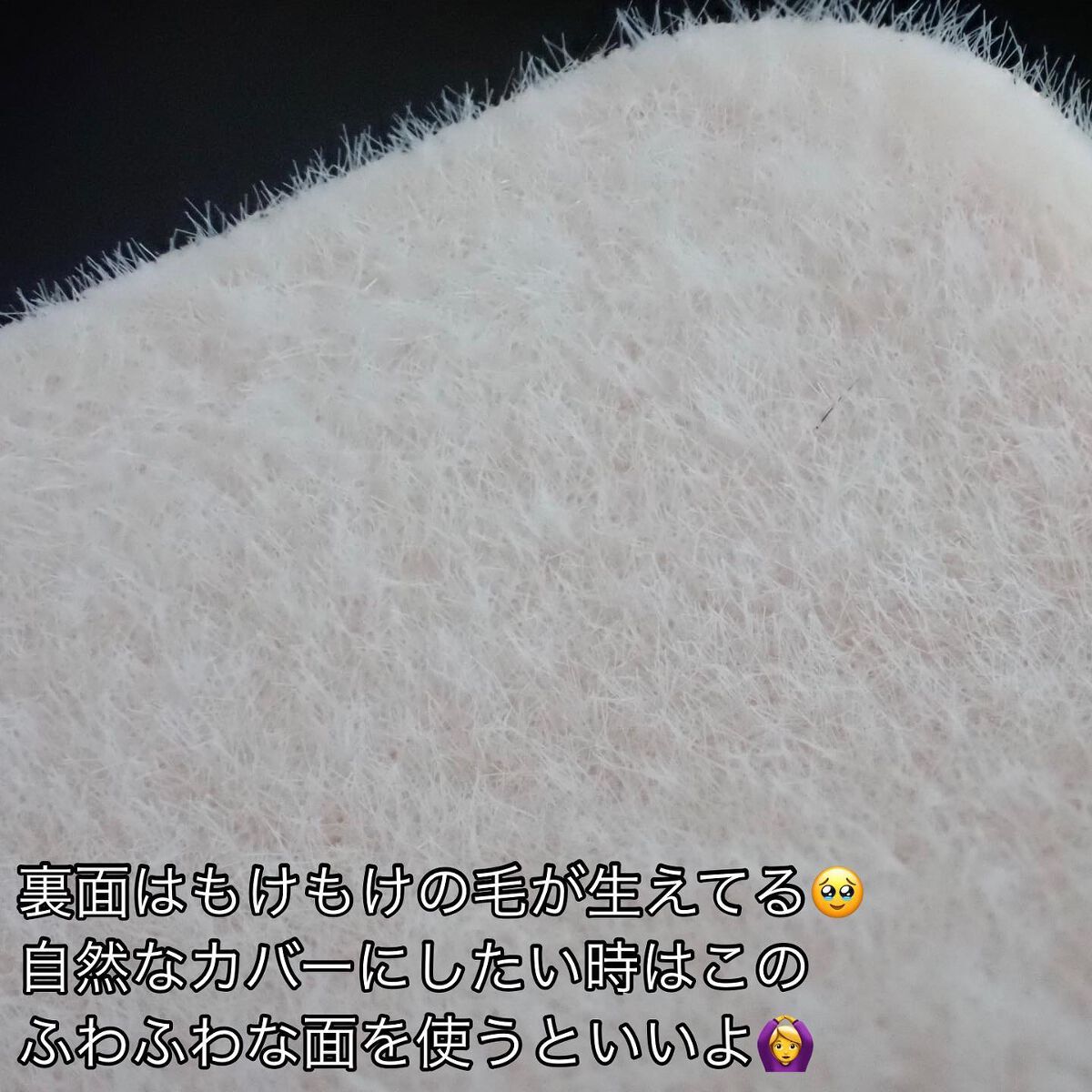 このパウダーファンデ、とにかくスゴい! パウダーファンデって言うと、パサつく・カバー力ないくせに厚塗り感ありありって思われがちだけど、これ全然そんなことない。 めっちゃつるん!とした仕上がり。時間が経ってもキレイ、っていうか時間が経ってからの方が皮脂と馴染んでキレイ。 付属のスポンジはロゴのある面がツルツルでハイカバー仕上げ、裏面はふわふわでナチュラル仕上げになる両面タイプ。