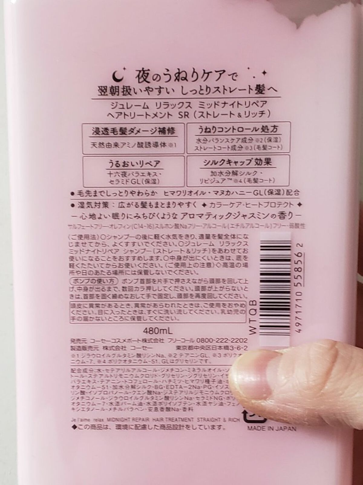 Je l'aime リラックス ミッドナイトリペア シャンプー/ヘアトリートメント (ストレート&リッチ) | 968円 |
