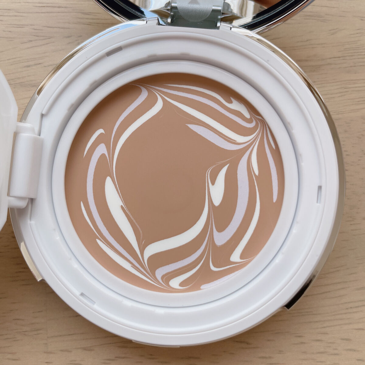 - お肌を健康的な肌印象に仕上げる美肌スキンケアファンデーションです。 天然成分で優しい使い心地。敏感肌も使用可能。また、ファンデーションは3色のマーブル柄になっており、それぞれの色に機能性があります。 ホワイトは保湿、パープルはハイライト効果、ベージュはカバー。 この3色の機能で明るい印象の素肌のようなメイクアップを仕上げます。