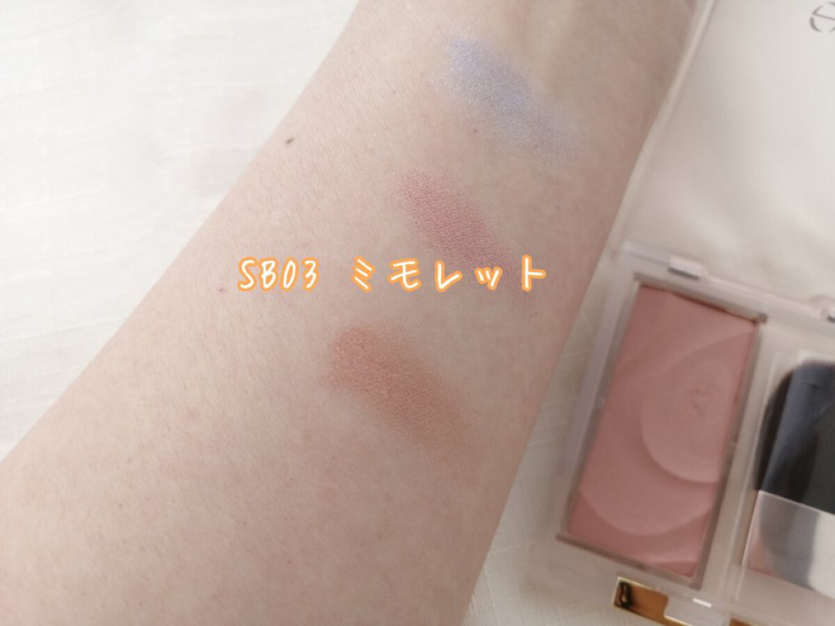 - <SB01 シーショア> タルク、トリエチルヘキサノイン、窒化ホウ素、ポリグリセリル-3ポリジメチルシロキシエチルジメチコン、ラウリン酸亜鉛、トリメチルシロキシケイ酸、メチルトリメチコン、ステアリン酸ソルビタン、セラミドNP、スクワラン、ホホバ種子油、オリーブ果実油、トコフェロール、メチルパラベン、(+/-)グンジョウ、マイカ、酸化チタン、酸化鉄、水酸化Al、赤202、赤226 <SB02 シスター> タルク、トリエチルヘキサノイン、窒化ホウ素、ポリグリセリル-3ポリジメチルシロキシエチルジメチコン、ラウリン酸亜鉛、トリメチルシロキシケイ酸、メチルトリメチコン、ステアリン酸ソルビタン、セラミドNP、スクワラン、ホホバ種子油、オリーブ果実油、トコフェロール、メチルパラベン、(+/-)グンジョウ、マイカ、酸化チタン、酸化鉄、水酸化Al、赤202、赤226 <SB03 ミモレット> タルク、トリエチルヘキサノイン、窒化ホウ素、ポリグリセリル-3ポリジメチルシロキシエチルジメチコン、ラウリン酸亜鉛、トリメチルシロキシケイ酸、メチルトリメチコン、ステアリン酸ソルビタン、セラミドNP、スクワラン、ホホバ種子油、オリーブ果実油、トコフェロール、メチルパラベン、(+/-)グンジョウ、マイカ、酸化チタン、酸化鉄、水酸化Al、赤202、赤226 <SB04 トースト> タルク、トリエチルヘキサノイン、窒化ホウ素、ポリグリセリル-3ポリジメチルシロキシエチルジメチコン、ラウリン酸亜鉛、トリメチルシロキシケイ酸、メチルトリメチコン、ステアリン酸ソルビタン、セラミドNP、スクワラン、ホホバ種子油、オリーブ果実油、トコフェロール、メチルパラベン、(+/-)グンジョウ、マイカ、酸化チタン、酸化鉄、水酸化Al、赤202、赤226 <SB05 ワルツ(限定)> タルク、トリエチルヘキサノイン、ステアリン酸ソルビタン、窒化ホウ素、ポリグリセリル-3ポリジメチルシロキシエチルジメチコン、ラウリン酸亜鉛、トリメチルシロキシケイ酸、メチルトリメチコン、セラミドNP、スクワラン、ホホバ種子油、オリーブ果実油、トコフェロール、メチルパラベン、(+/-)グンジョウ、ホウケイ酸(Ca/Al)、マイカ、金、酸化チタン、酸化鉄、水酸化Al、赤226 <SB06 オーケストラ(限定)> タルク、トリエチルヘキサノイン、ステアリン酸ソルビタン、窒化ホウ素、ポリグリセリル-3ポリジメチルシロキシエチルジメチコン、ラウリン酸亜鉛、トリメチルシロキシケイ酸、メチルトリメチコン、セラミドNP、スクワラン、ホホバ種子油、オリーブ果実油、トコフェロール、メチルパラベン、(+/-)グンジョウ、ホウケイ酸(Ca/Al)、マイカ、金、酸化チタン、酸化鉄、水酸化Al、赤226