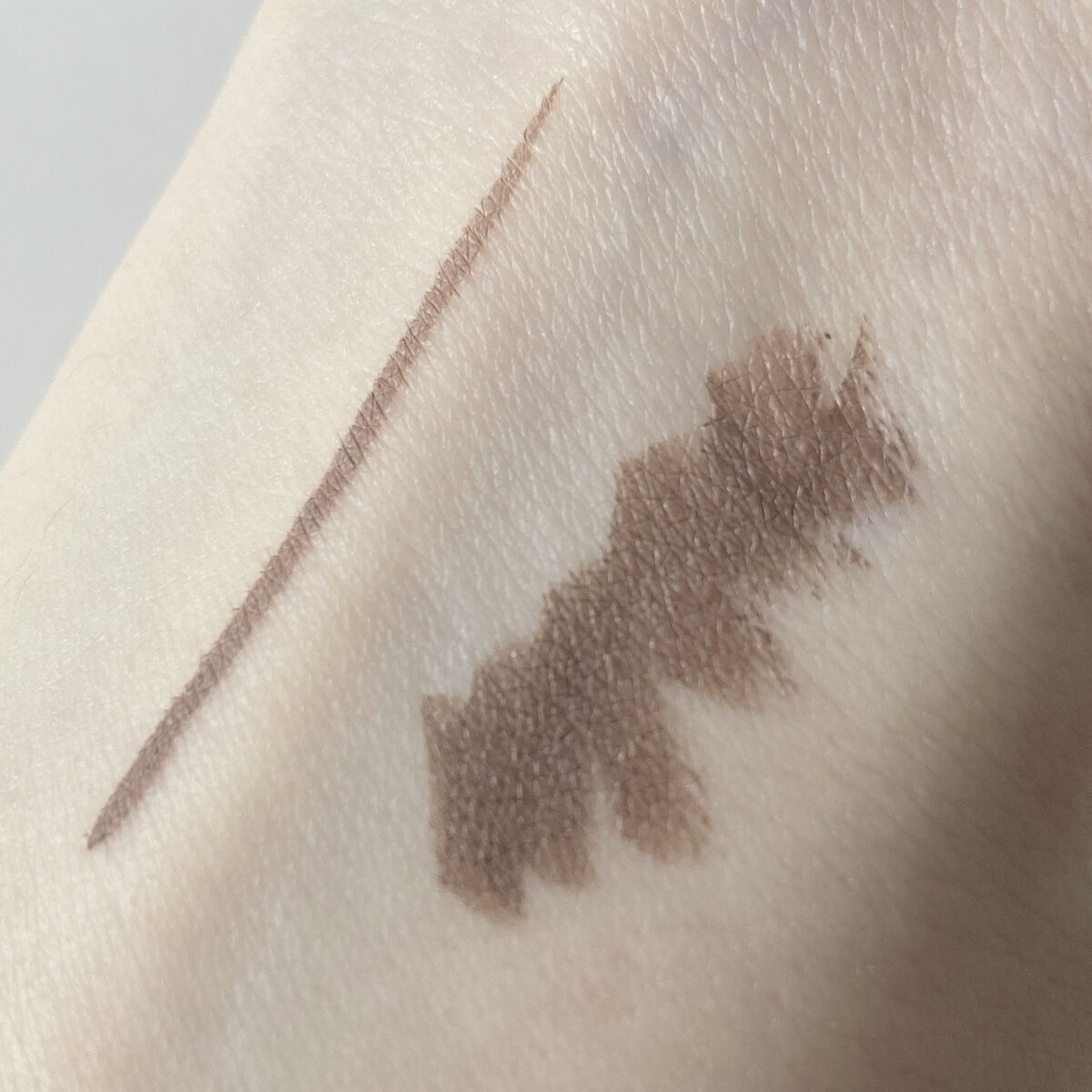 - 筆先までずっとなめらか、目尻で感動するリキッドアイライナー。 必要な量が肌にのる新設計で、まぶたの上をすべるような、滑らかな描き心地。しなやかでコシのある筆が、筆圧のコントロールを容易にし、太いラインも細いラインも思い通りに仕上げます。水、汗、涙に強いウォータープルーフタイプなのに、通常洗顔で簡単オフ。肌に色素が残らない顔料を使用。5種類の美容液成分を従来品の200%配合し、メイクしながら目元ケアまで。 ●ブラウンブラック ※2020年9月12日 バラエティショップ先行発売 ●漆黒ブラック ※2020年12月頃発売予定 ●ナチュラルブラウン ※2020年12月頃発売予定 ●シフォンブラウン 「毎日メイクに透明感と抜け感」 ブラウンでも、グレーでも、ベージュでもないニュアンスカラー。 自然な印影で素の目元を際立て、頑張りすぎない、ふんわりとした目元に。 ●アプリコットブラウン 「じゅわっと血色感。 肌に馴染むおしゃれカラー」 温かみのあるアプリコットがじゅわっと滲む血色感を目元に演出。 肌馴染みが良いので、カラーライナーに抵抗がある方もブラウンの延長線上で楽しめる、使いやすい色味です。 ”ちょっとオシャレ”な空気感を演出するカラー。 ●ピンクショコラ アイライナー 「ピンクが溶け込む濃厚ブラウン」 肌馴染みが良く、目元にじんわり血色感をプラス。 さりげなく女性らしさが加速するようなカラー。 ●ピスタチオラテ (2022年7月29日(金)発売) 「“目尻”に抜け感アクセント」 肌に馴染むのに映える絶妙なグリーン。 トレンドカラーに“くすみ”と“抜け感”をプラスしたまろやかな発色。 ●マスタードブラウン 「“イエロー”が揺れる、大人の洒落色」 (2022年7月29日(金)発売) まるで太陽のような暖かさを感じる新しいブラウン。 ほんのり感じるイエローでメイクが一気に垢抜ける稀有な色。 ●シフォンピンク(2023年2月10日発売) 「ふんわり柔らか"まろみピンク"」 甘くなりすぎない青みニュアンスで目元の透明感UP。 目元を引き締め、ピンクメイクにありがちな腫れぼったさを解消。 ●ミルクカプチーノ(2023年4月21日発売) まろやかな深みの“優しい締め色” どんなメイクにも合わせやすいカラー。 自然な陰影でさりげなく目幅を拡張します。 ●グレーカシミア(2023年10月1日発売) ブラウンがほんのり溶け込んだ、暖色グレー まろやかな発色で、パーソナルカラーを問わず肌に馴染む 目元の陰影になりすまし、抜け感と目力を欲張りに叶える ●ダークフィグ(2024年6月1日発売) するする”なめらか。描きやすいのに、落ちにくい。 クッキリ可愛いほの甘ダークブラウン ●ピーチモカ(2024年8月1日発売) ふわっと自然に盛れる“桃色ブラウン” ほんのり血色感で目元にうるみ感を演出 ●スターダストブラウン(2024年12月11日発売) キラッと繊細に輝く''星屑ブラウン'' 透け感のあるダークブラウンの色味とラメの輝きが、目元に艶のある立体感を演出 ●チャコールモカ(2025年4月10日発売) 目元を締める''深みグレージュ'' 黄みや赤みに偏りすぎない絶妙な色設計で、自然に目元を強調