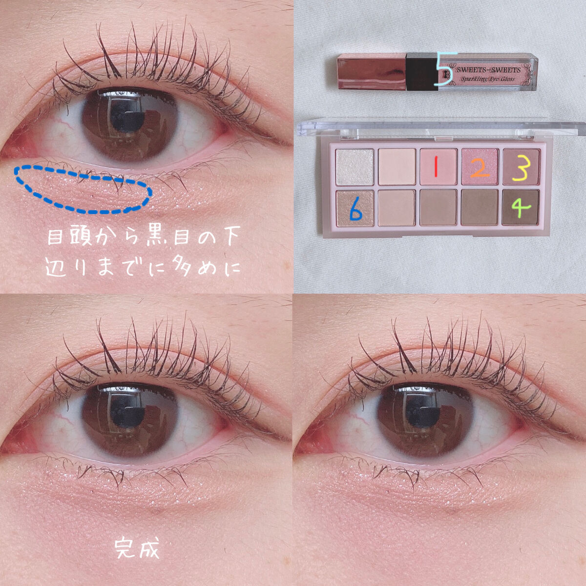 アイシャドウ👀・CLIOプロ アイ パレット01SIMPLY PINK グリッター✨・PERIPERAデュオ ポケット グリッター シャドウ03SALTED SUGARPLUM 涙袋のコンシーラー👧・キャンメイクカラーミキシングコンシーラーオレンジベージュ マスカラ💇♀️・rom&ndハンオールフィックスマスカラL02LONG ASH アイライン✏️・キャンメイククリーミータッチライナーダークブラウン・CEZANNE極細アイライナーEX20ブラウン