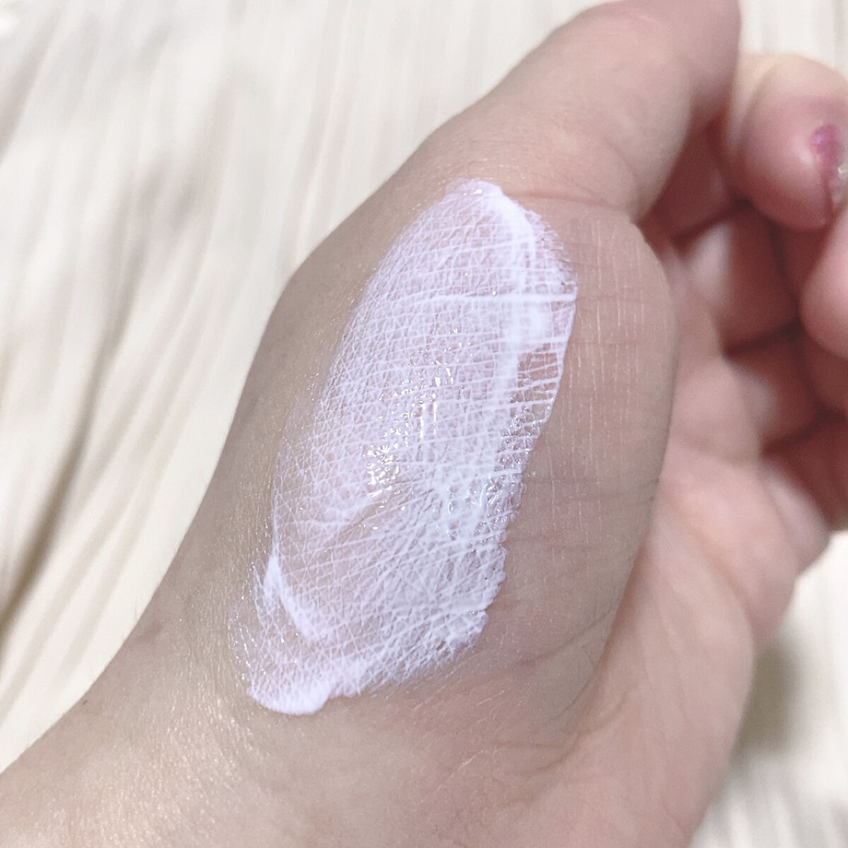 | スルスルっと伸びて、肌になじむとほんのりツヤ感を感じます。 後肌はさらり。 | 詳細を見る | ||