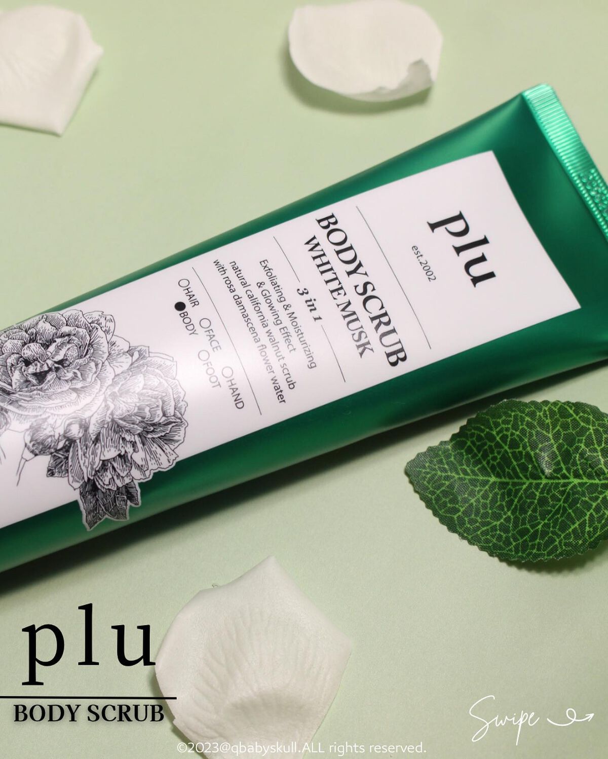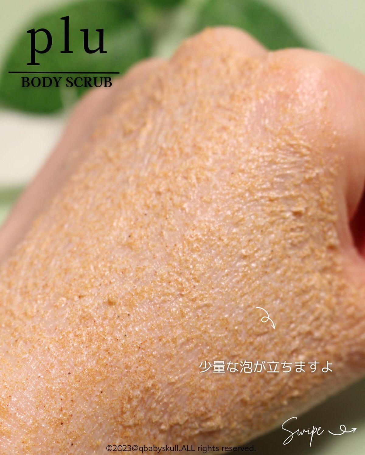 - plu ボディスクラブは韓国累積販売4600万個以上、クルミ穀粒配合のスクラブ。 ふんわりと暖かみのあるホワイトムスクの香り。