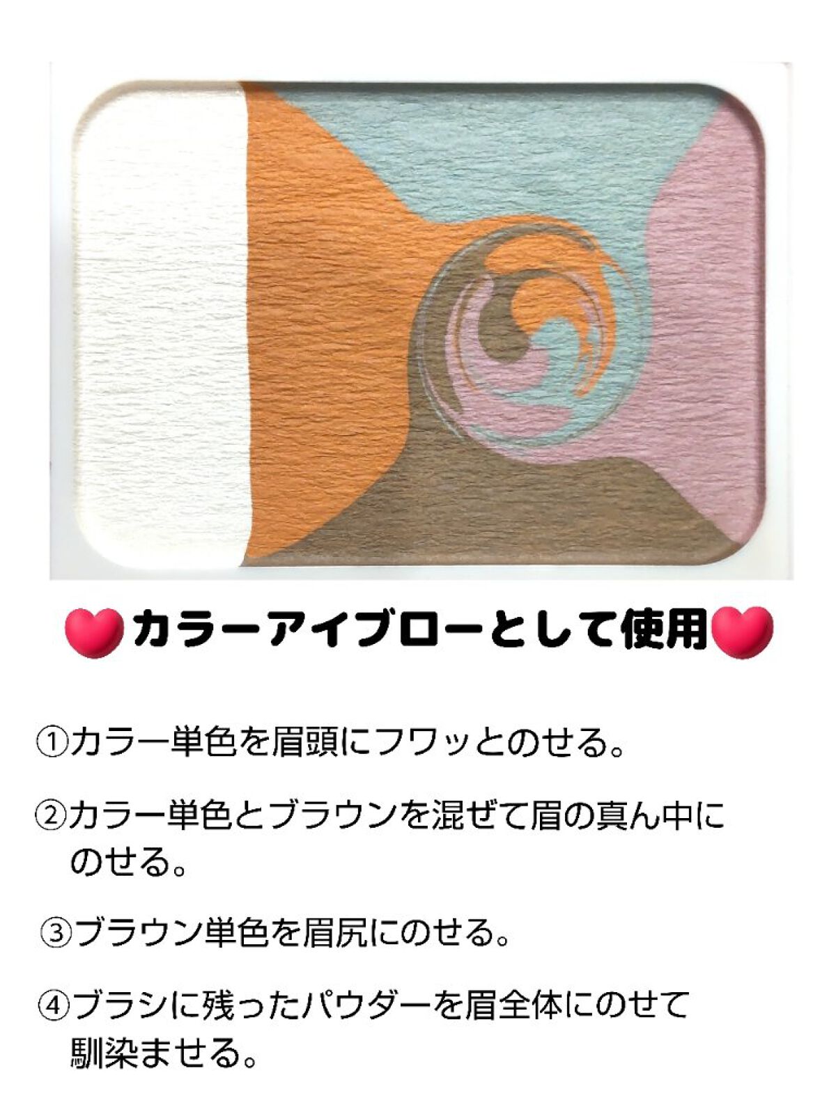 - 色のレイヤードで立体感のあるナチュラルあか抜け印象眉をつくる アイシャドウやハイライトとしても使えるカラフルアイブローパウダー *チップ・ブラシ付き *無香料