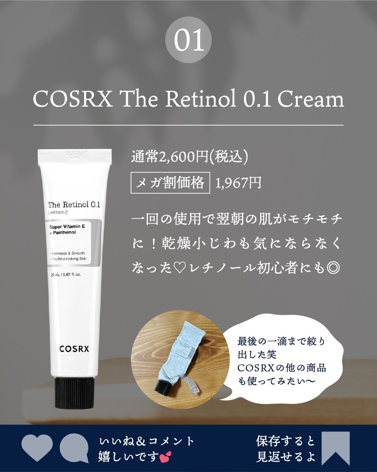COSRX RXザ・レチノール0.1クリーム | 2,600円 |
