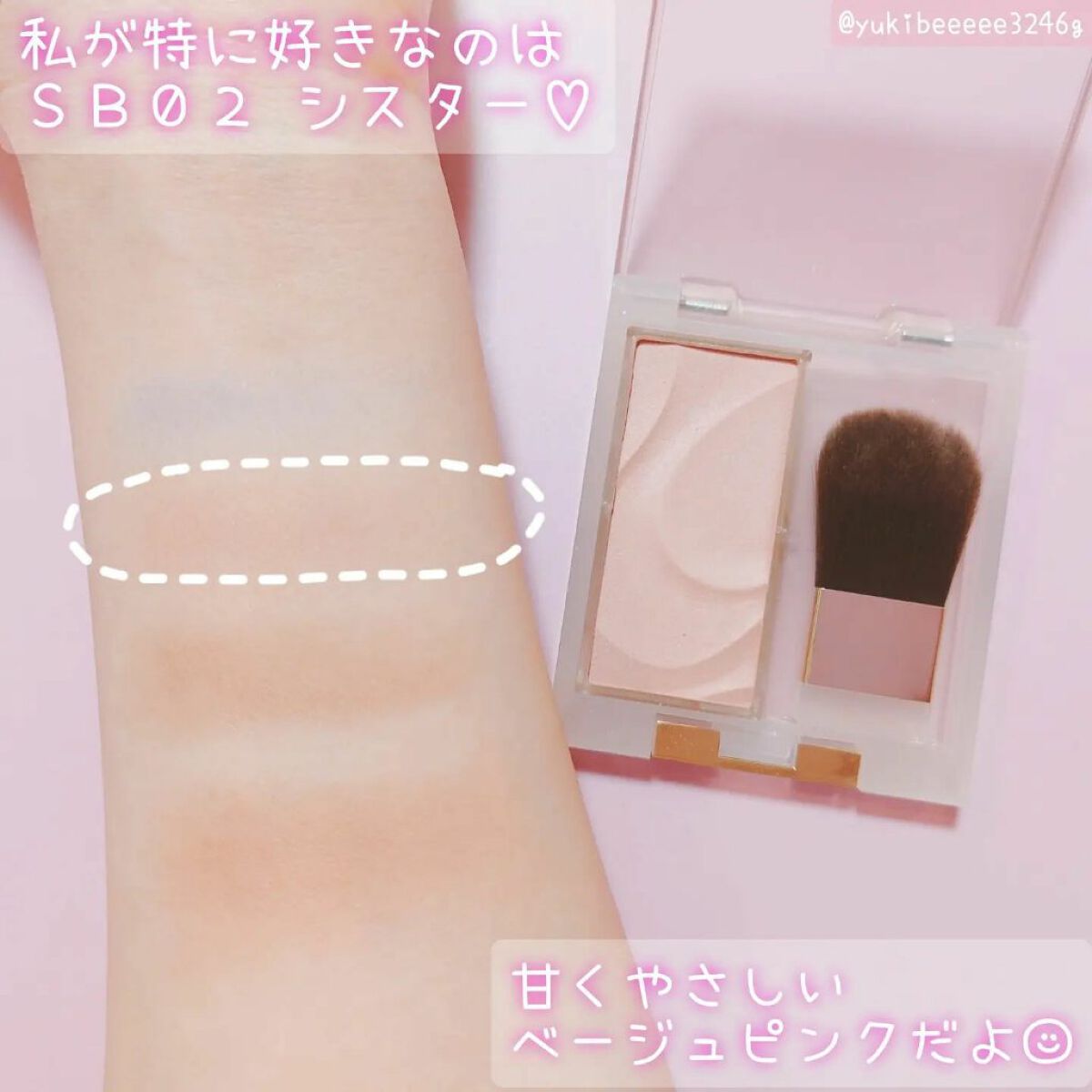 エクセルシームレストーンブラッシュほぼ全色スウォッチ!SB02シスターSB03ミモレットSB04トーストSB05ワルツSB06オーケストラ限定2色はパケがキラキラしてる✨愛用してるシスターは底見えまくってます🤣💕...