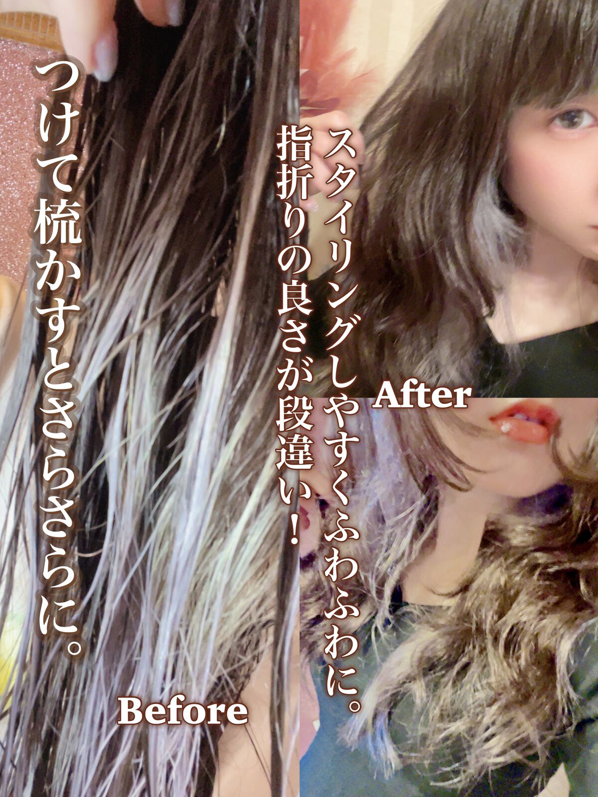 ケラチン+タンパク質+アミノ酸で集中栄養ケア ウルトラプロテイン ヘアトリートメント 洗い流すタイプのトリートメントです。 カラーやブリーチ、パーマで傷んだ髪をダメージケアしてくれるリバイブ ノーウォッシュトリートメント ダメージリペア 洗い流さないトリートメントです。 吹きかけだけなので簡単~ 組み合わせて使うとまとまりよくサラサラ(≧∀≦)