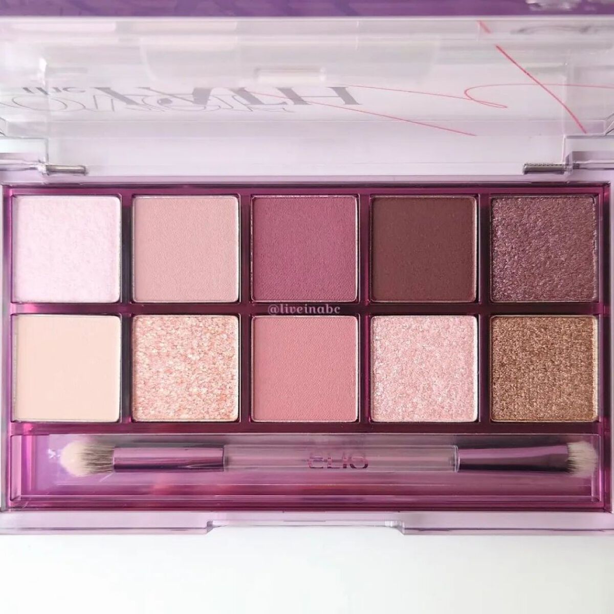 - ひとつのパレットにマット、シマー、グリッターなど多様な質感を贅沢に使用。塗る順序やカラーの組み合わせを変えるだけでデイリーメイクにも、特別な日のお出かけメイクにもできる優れもの。また粉飛びせず、まぶたにしっかり密着します。