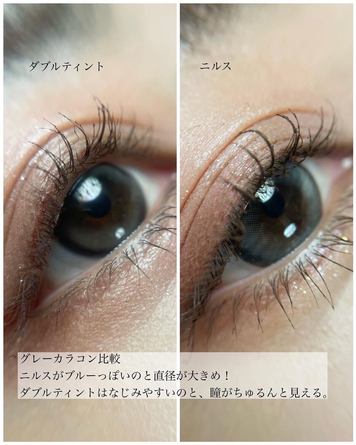 着色部分が少ないため、ナチュラルに盛りやすくそれでいて乾燥もしにくかったです!! 瞳の色に馴染みやすく、グレー特有の青っぽい感じが若干でましたが全然違和感ありません! フチがあるので、瞳がハッキリしてめちゃくちゃ盛れます!