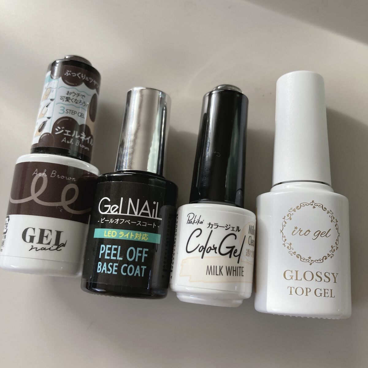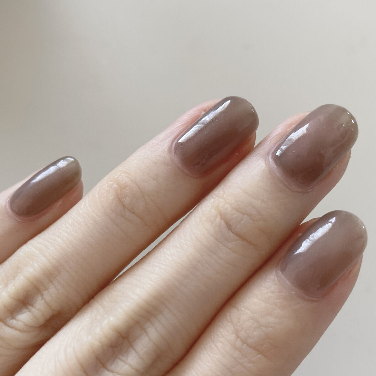 ローズブラウンだけこの中だとすこし透明感が低い色 落ち着いたカラーで使いやすいです 他2つはクリア度が高い色ですベースカラーが透明のままだと 自爪の色が透けてもっとピンクぽさが強く出ます ベース:セリア ピールオフベース トップ:ネイルタウン irogel グロッシートップ (ノンワイプトップ)