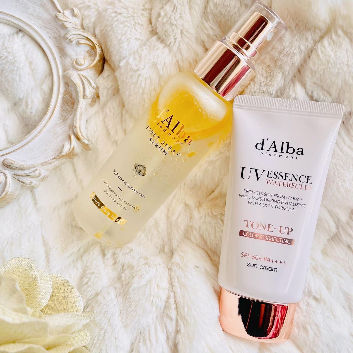 💫ダルバホワイトトリュフファーストスプレーセラム&ウォータフルトーンアップサンクリーム💫多幸感肌セット🎀.°ピュアな輝きと多幸感に満ち溢れた肌へ人気No.1🌟オイル&セラムの2層レイヤーで潤いツヤ肌が叶うミストメイクの上からも◎どんな肌も自然...