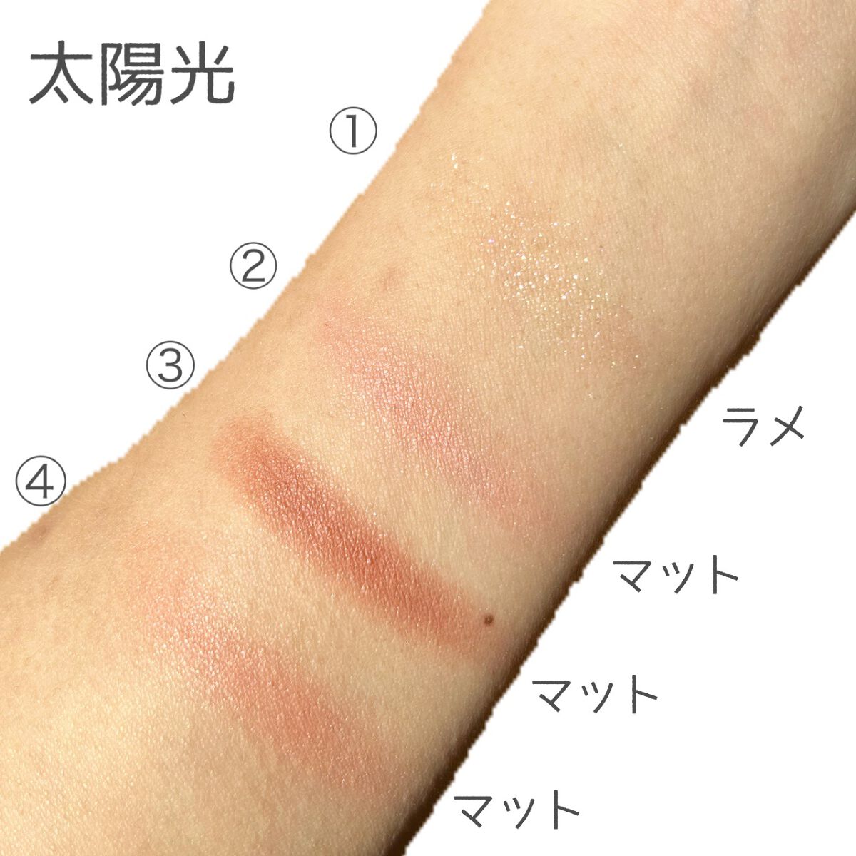 キャンメイクシルキースフレアイズマットタイプM04キューピッドペタル¥825◇質感(マット3、小粒ラメ1)質感はマットですがふわっとしていて透け感があるので色を重ねても重くなったり濁ったりしないのが特徴です◎ラメは小粒ですが思った以上にキラッ...