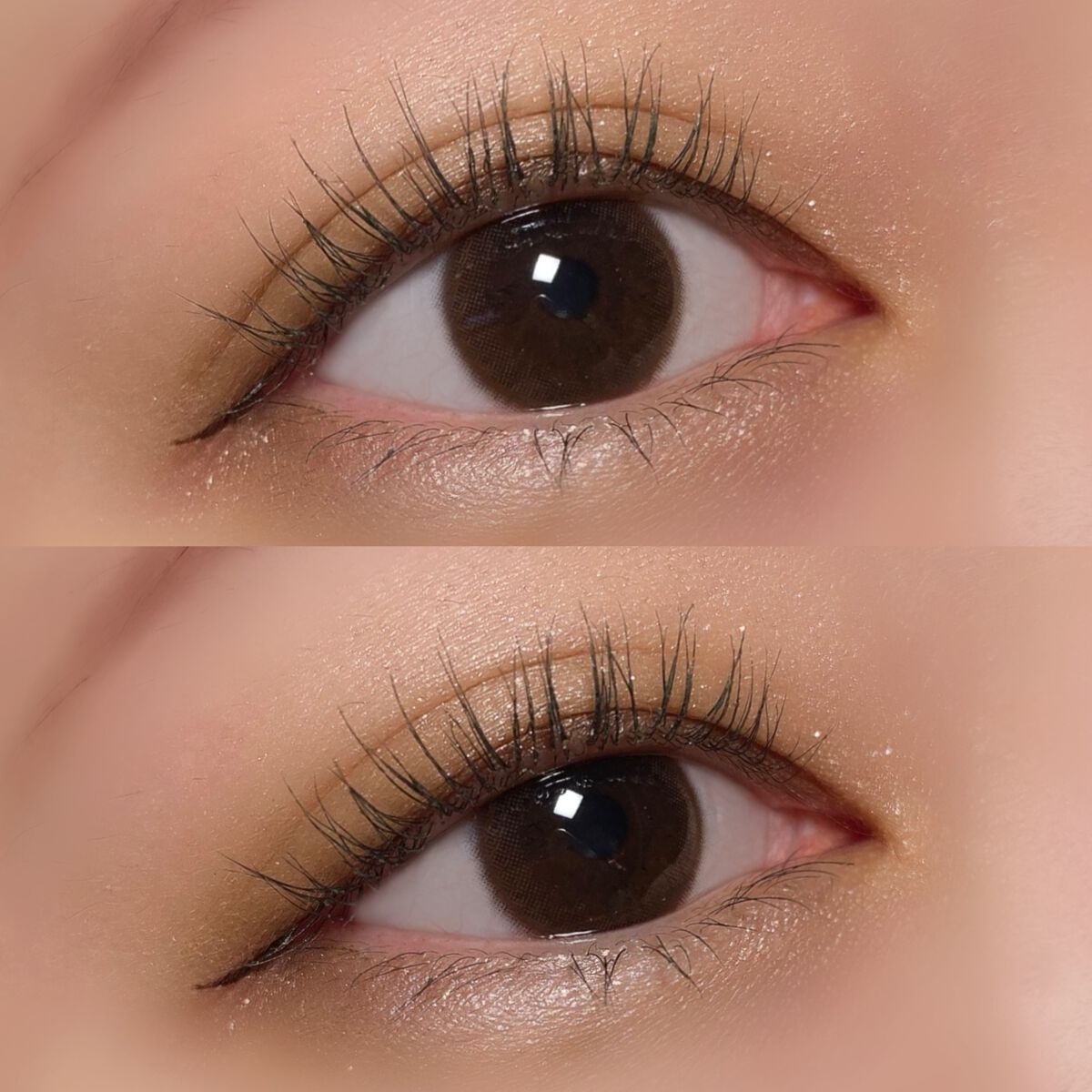 このメタリックマスカラは、コームが特殊! 極細のメタルコームで、0.45mm間隔の均一なピッチ。 程よく数本のまつ毛を束ねてくれて、綺麗な束になるの! コームは2.5mmとかなり細めなので、目頭や目尻が塗りやすいのはもちろん、下まつげも束が作りやすいの✨ 液がゆるめだから、重ね塗りしてもダマになりにくかったよ◎ 一度塗りだとわりと自然な仕上がりだから、重ね塗りして自分の好みの束感作ってみてね🫧 カールキープ力はしっかりあって、カールは落ちにくかった◎ 滲んだりとかもなかったよ! このマスカラの値段はなんと990円と1,000円以下なの…! この値段で綺麗な束感まつ毛が作れちゃうのすごすぎる〜!コスパ良い❤️🔥 現在は、クリアブラックのみがPLAZA・MINiPLAで先行販売です*̩̩̥ 1月からは全国的に販売されるよ🥰 クリアブラックに加えて、ブラウンも発売されるみたい!全2色展開! 限定のようなので、気になる方は売り切れちゃう前に要チェックだよ〜!!