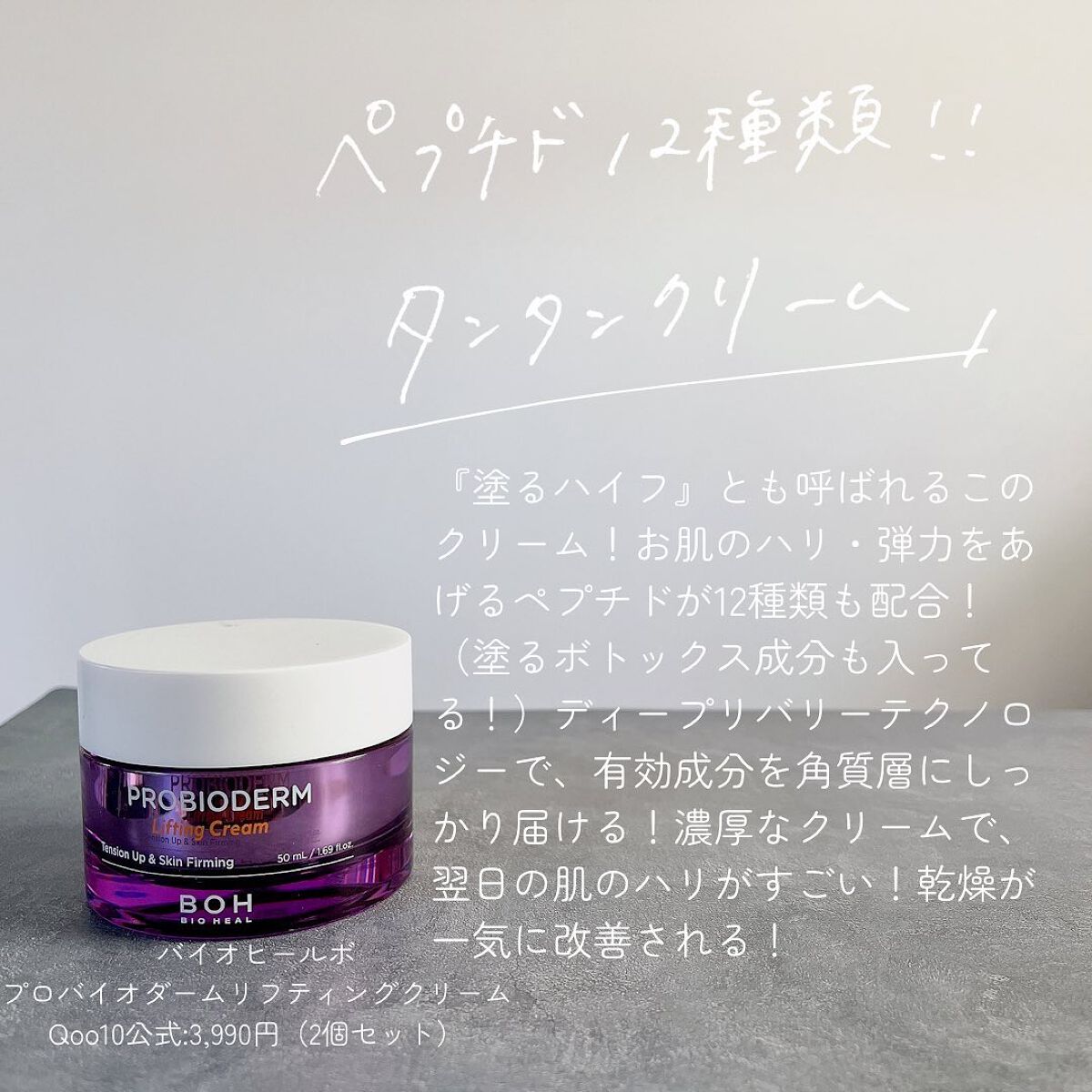 【韓国のハリ美容、侮れない・・・】〖𝐵IOHEALBOH〗プロバイオダーム3Dリフティングクリーム/¥3,300(*1)(Qoo10内最安値)バイオヒールボといえば韓国のハリ美容として有名で、シワに効くリフティングアイクリームが人気ですよね💟...