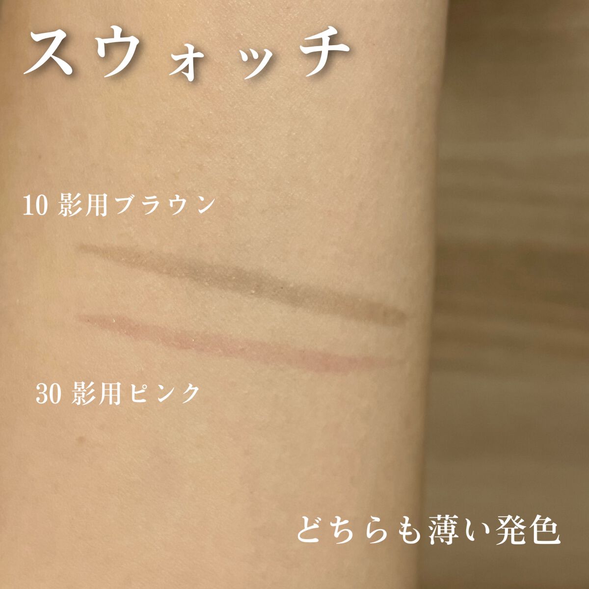 - <10 影用ブラウン> 水、BG、アクリレーツコポリマー、ペンチレングリコール、スルホコハク酸ジエチルヘキシルNa、エタノール、カミツレ花エキス、(+/-)黄4、赤227、青1 <20 影用グレージュ> 水、BG、アクリレーツコポリマー、ペンチレングリコール、スルホコハク酸ジエチルヘキシルNa、エタノール、カミツレ花エキス、(+/-)黄4、赤227、青1 <30 影用ピンク> 水、BG、アクリレーツコポリマー、ペンチレングリコール、スルホコハク酸ジエチルヘキシルNa、エタノール、カミツレ花エキス、(+/-)赤227、黄4、青1