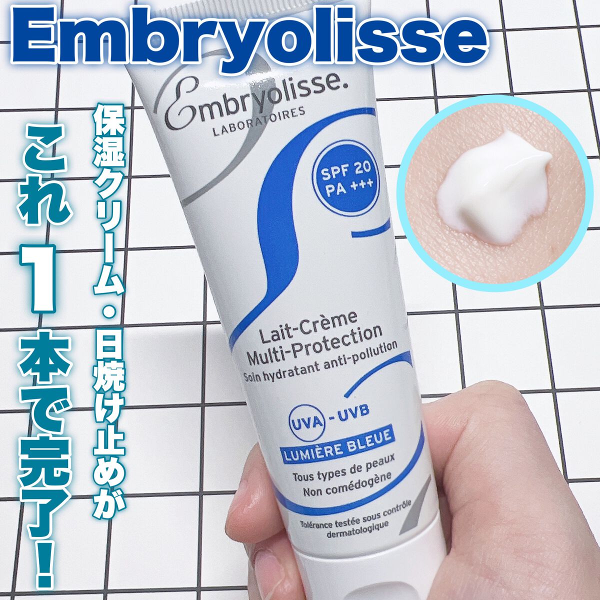 - SPF 20 PA+++ 保湿クリーム・日焼け止めが1 本で完了! ■ 紫外線など日中の様々な刺激からお肌を守る! パソコンやスマホを使用する時間がますます長くなり、1 日6 時間以上画面を見ている人も少なくありません。 しかし、画面から放出されている「ブルーライト」は目だけではなく肌にまでダメージを与えてしまいます。 そんなブルーライトの予防対策が欠かせない今だからこそ、「アンブリオリス プロテクションクリーム」は4 種類のフィルターで、紫外線A・B 波だけではなくブルーライトからも肌を保護してくれます*¹。 *¹:海外の検査機関で確認試験を実施。 ■ 「アンブリオリス」ならではの保湿力と心地良さ 「日焼け止め対策をしっかり行いたいけれど、うるおいとなめらかな使い心地は譲れない!」という方におすすめの「アンブリオリス プロテクションクリーム」。 ロングセラーの「アンブリオリス モイスチャークリーム」と同様に、保湿効果とエモリエント効果に優れたアロエベラ*³、ダイズタンパク*⁴、シアバターとミツロウの天然由来保湿成分を配合しており、肌を保湿して乾燥から守ります。さらに、紫外線やブルーライトからダメージを受ける肌を考えた処方で、ビタミンE(トコフェロール)配合で肌を整えます。年を重ねた肌にうるおいを与えてエイジングケア*⁵。 敏感肌の方にも*⁶お使いいただけます。 白浮きしないなめらかなテクスチャーで、シルクのような透明なヴェールで肌をやさしく包み込みます。 朝のメイク前の下地としてもお使いいただけます。 *3 : アロエベラ葉エキス *4 : 加水分解ダイズタンパク *5 :年齢に応じたお手入れのこと。*6 : すべての方に肌トラブルがおきないわけではありません。 ※成分・処方はそのままに、2023年5月よりパッケージデザインを順次リニューアル