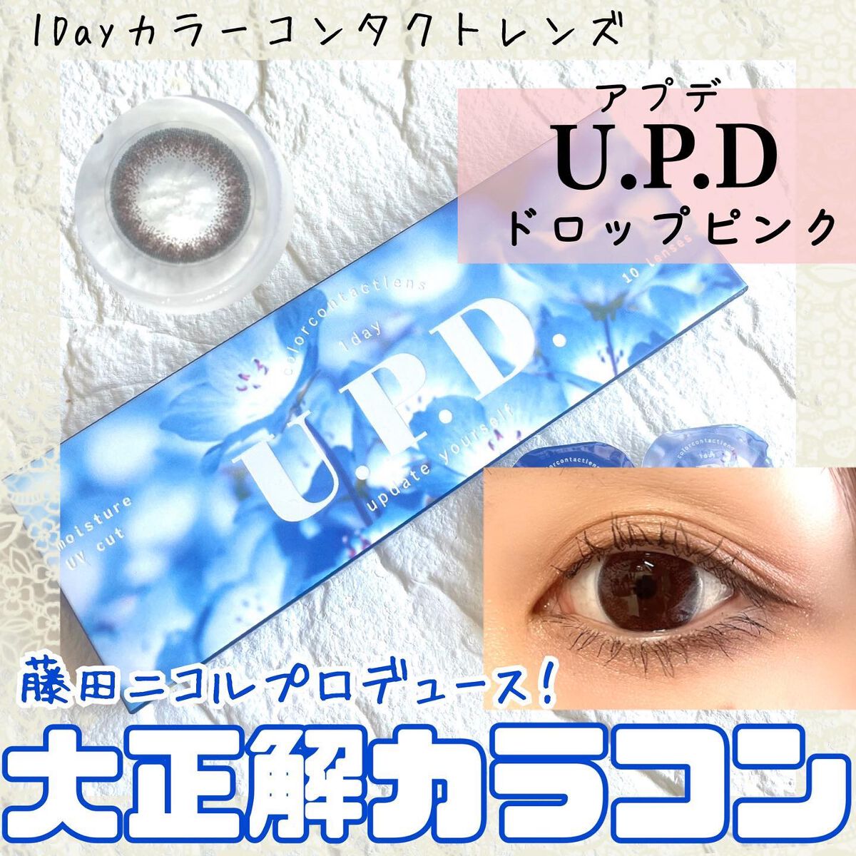 - 「毎日、過去イチかわいいわたし」ナチュラルだけどちゃんと盛れる"正解カラコン"U.P.D. (アプデ)。 もっと可愛く自分をアップデートして欲しいという思いを込めて作られたカラコンです。 ナチュラルな気分の時も盛りたい時も使える大人デザインとサイズ感がちょうど良いデザイン。 カラーコンタクトレンズの不適正使用による眼障害の危険性等などがあります。 ●コンタクトレンズは高度管理医療機器です。不十分な洗浄・消毒など不適切なケアや、長時間・交換期間を超えた装用により、アレルギー性結膜炎、角膜感染症、角膜潰瘍等の重篤な眼障害が発生する危険性があります ●ご使用前に取扱説明書を確認してください 使用上の留意事項 ●眼科医院等を受診してからお求めください ●眼に異常を感じたら直ちにレンズ使用を中止し、お近くの眼科等で診察を受けてください ●医師の指示にしたがってご使用ください ●コンタクトレンズを装用する場合、自覚症状がなくても、眼科医院等での定期検査を受けてください ●レンズに不具合がある場合は使用しないでください