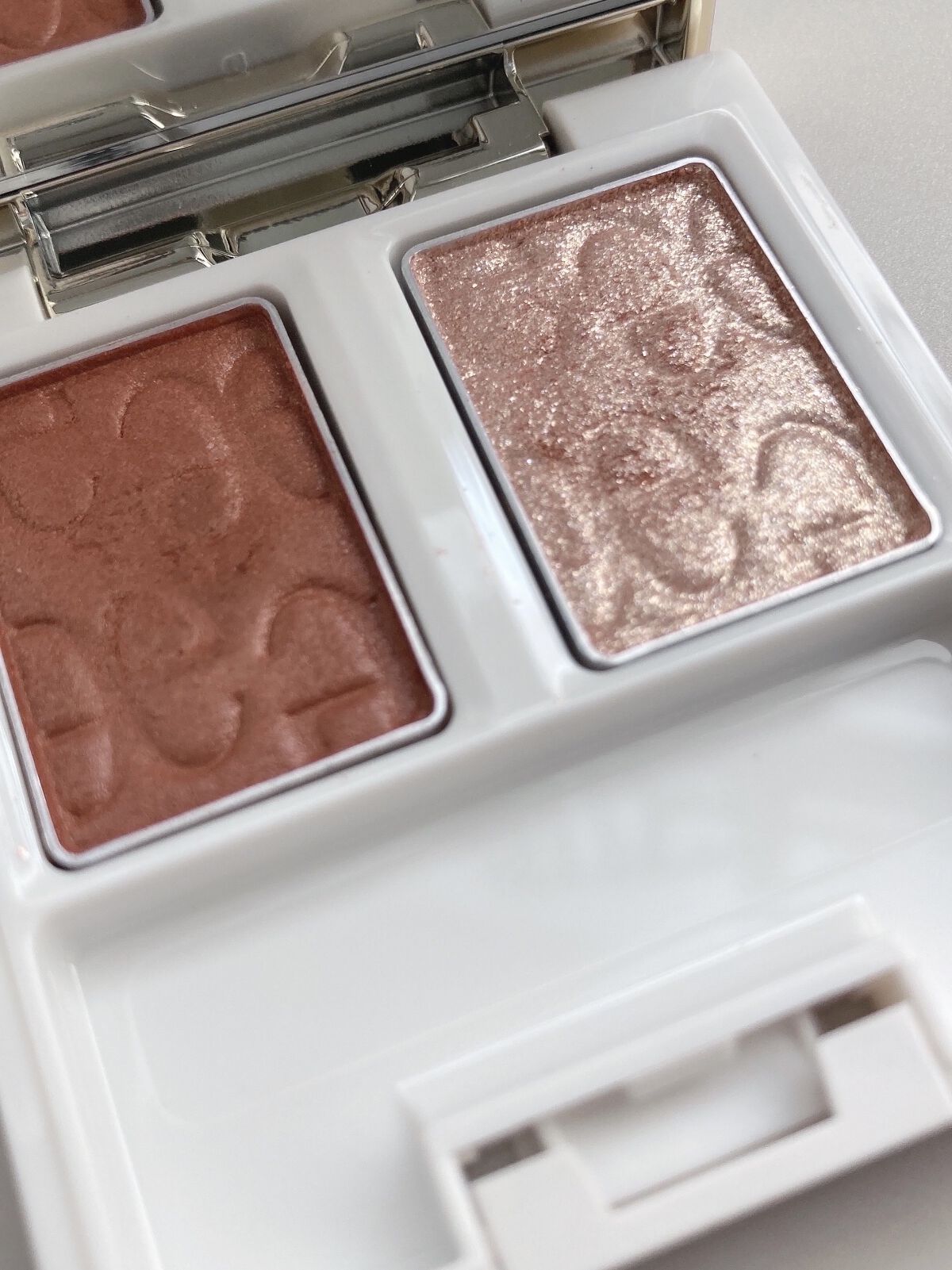 特に右側のラメが大好きです💖 いつも左側のオレンジを薄く塗ってその上から右側のラメを全体的に乗せています✨✨ ラメが気に入りすぎて他のアイシャドウともよく組み合わせています🥰