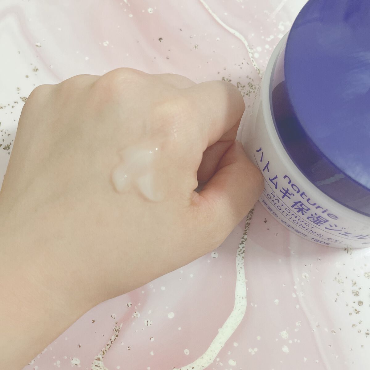 たっぷり水分補給できるさっぱり&高浸透処方で水分を蓄えやすい肌に導く天然保湿成分 「ハトムギエキス」配合の化粧水です。 みずみずしいテクスチャーの化粧水で、ばしゃばしゃとたっぷり使うのがお気に入り。 ぷるんぷるんのジェル。みずみずしく伸びて、すっとなじんでくれます。