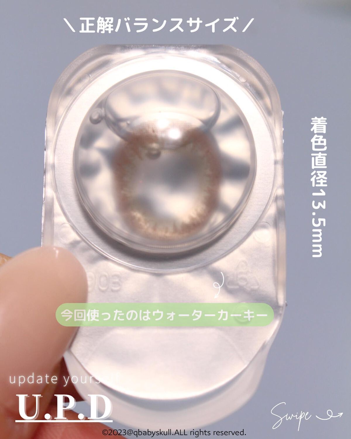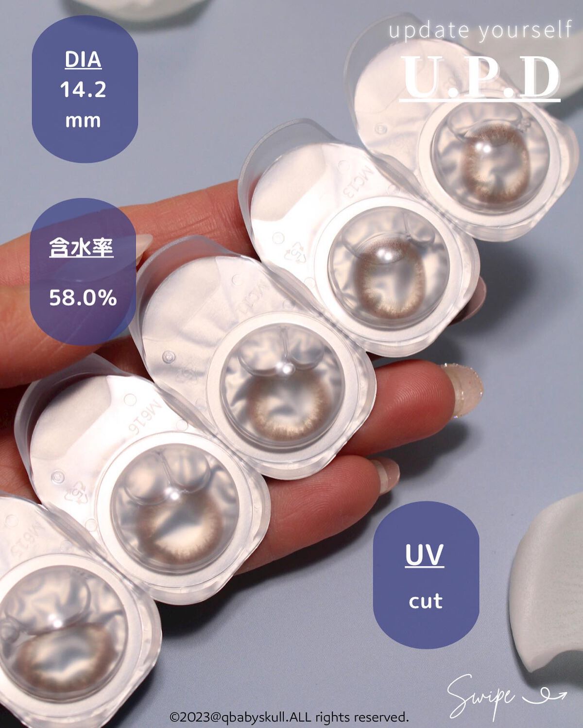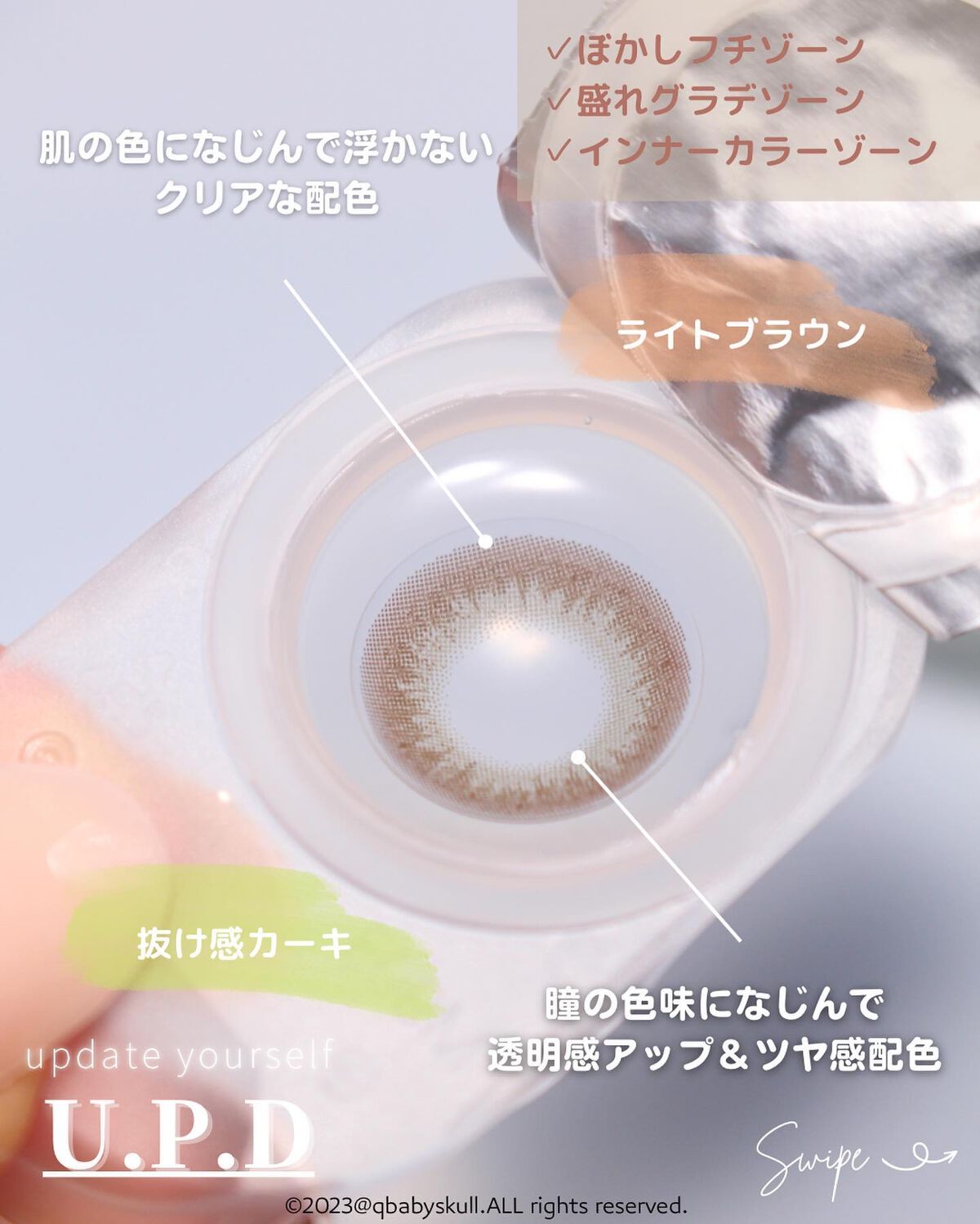 - 「毎日、過去イチかわいいわたし」ナチュラルだけどちゃんと盛れる"正解カラコン"U.P.D. (アプデ)。 もっと可愛く自分をアップデートして欲しいという思いを込めて作られたカラコンです。 ナチュラルな気分の時も盛りたい時も使える大人デザインとサイズ感がちょうど良いデザイン。 カラーコンタクトレンズの不適正使用による眼障害の危険性等などがあります。 ●コンタクトレンズは高度管理医療機器です。不十分な洗浄・消毒など不適切なケアや、長時間・交換期間を超えた装用により、アレルギー性結膜炎、角膜感染症、角膜潰瘍等の重篤な眼障害が発生する危険性があります ●ご使用前に取扱説明書を確認してください 使用上の留意事項 ●眼科医院等を受診してからお求めください ●眼に異常を感じたら直ちにレンズ使用を中止し、お近くの眼科等で診察を受けてください ●医師の指示にしたがってご使用ください ●コンタクトレンズを装用する場合、自覚症状がなくても、眼科医院等での定期検査を受けてください ●レンズに不具合がある場合は使用しないでください