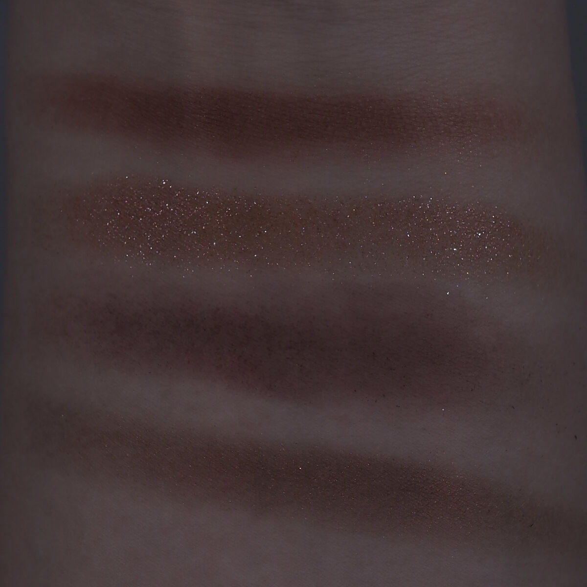 淡くて繊細な発色なのかな…?と見せかけてからの ペッカーン!とツヤ反射全振りの シャレーラストちゃん(ㅅ´ ˘ `) もはや雪原を彷彿させる光沢です🤣 上段がサテンのようで 下段がいわゆるシマーテクスチャでしょうか? 濃いメイクスキーちゃんろみは こちらは単品使用は考えておらず 他の濃いマットたちのアシストメンバーとして (しかし主役になりかねない) 活用していきたいっ!と購入しました😌 海外パレットのバキバキマット(Ex.melt)には こういうパレットがお互い映えると思うんですよね 最近のヴェロアカーキやバイオレットサテンにも 合いそうかなって思っています😚