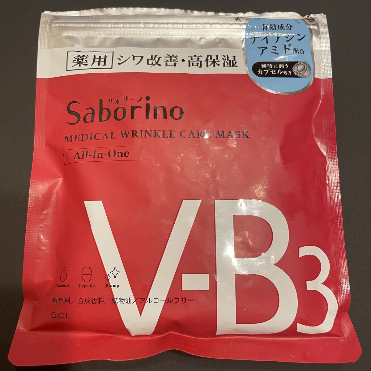 - サボリーノからシワ改善の薬用オールインワンマスク! サボってキレイのスピード処方! 【シワ改善・高保湿処方】有効成分:ナイアシンアミド シワと乾燥を防ぎながら ひたっと瞬時に潤う薬用処方のシートマスク 瞬時に潤うナノカプセル処方でスッと浸透(*) シートを貼った瞬間にひたっと潤いを感じる肌へ。 着色料/合成香料/鉱物油/アルコールフリー 医薬部外品 *角層まで 販売名 薬用 ひたっとマスク WR