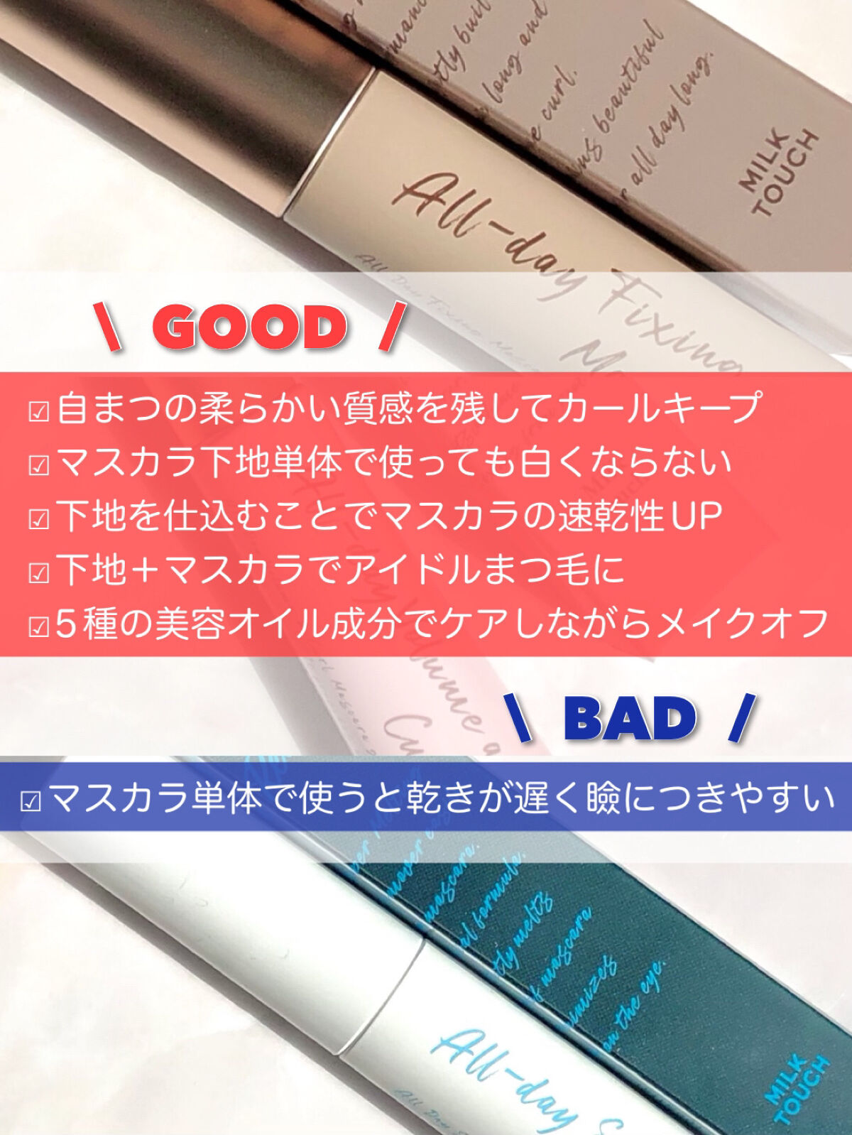 Milk Touch オールデイ ロング アンド カール マスカラ | 1,628円 |