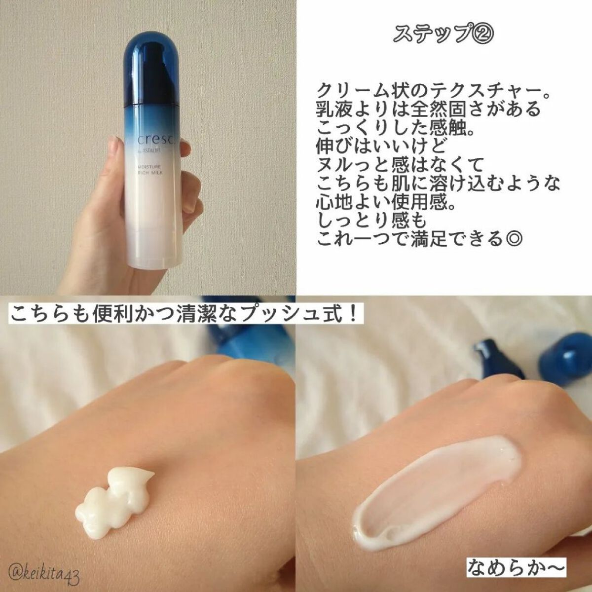 乳液よりクリームに近い ややこっくりめのテクスチャー 普通の乳液より保湿力高めで脂性肌さんとかはこの後にクリーム塗らなくてもこれ1本でいけちゃいそう◎ もうすぐ花粉の時期もくるしどんどん使っていくー😍 エアレス容器ににっています!