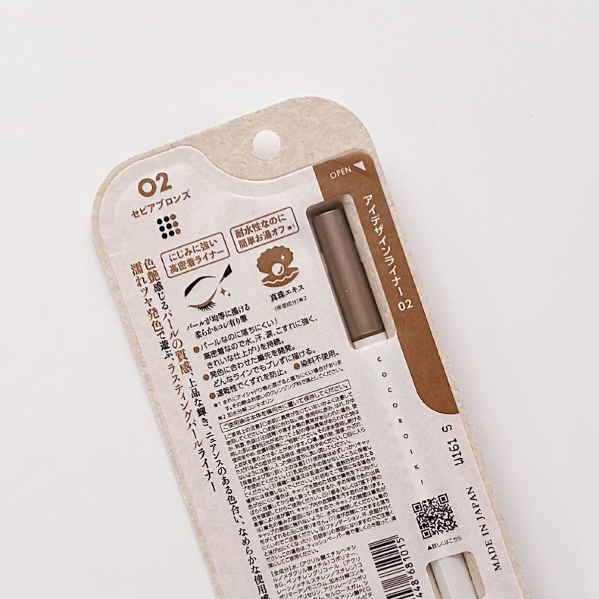 にじみに強い高密着パールライナー 耐水性なのに「お湯+洗顔料」でオフできる 肌なじみのいい洗練パールホワイト 目元に配慮した、保湿成分を配合しています 凄く発色が良いので動画の最後 目元の写真をご覧下さい🤍